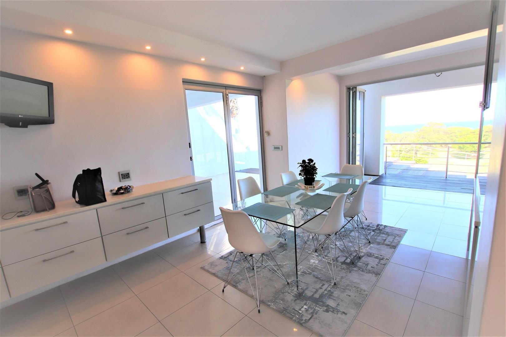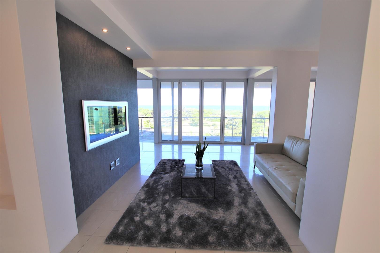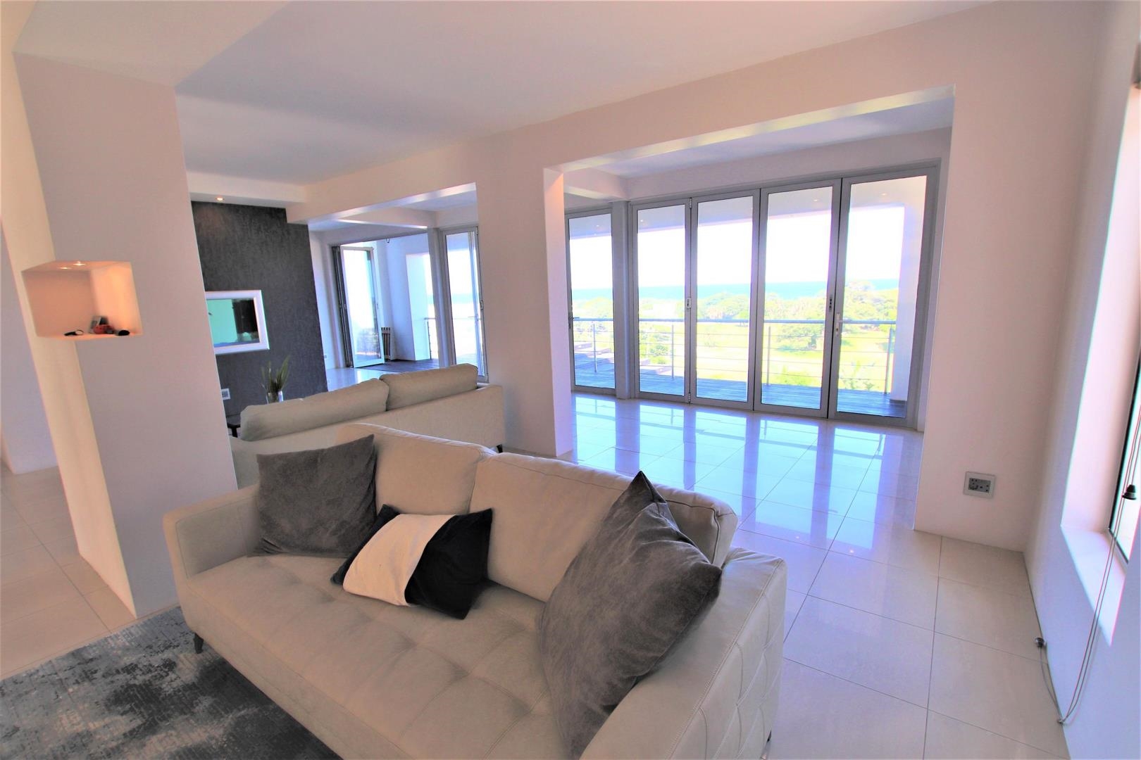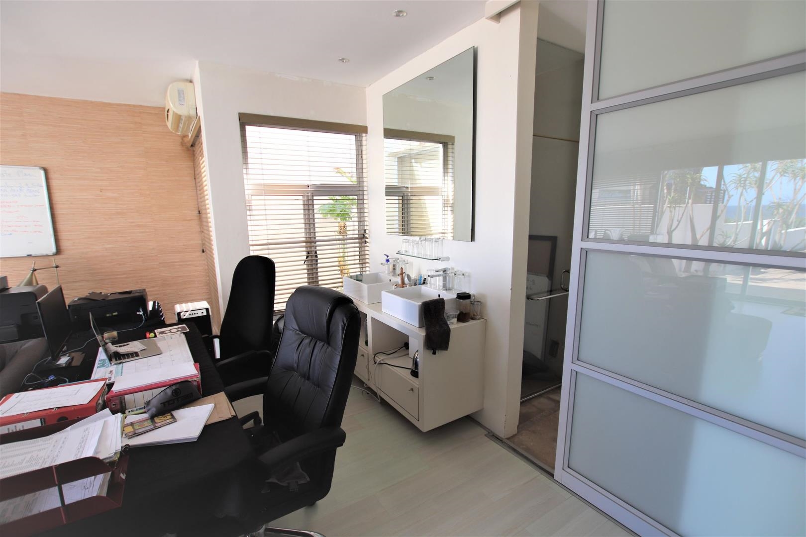 Hendra is delighted to present this fully furnished upmarket executive home for rent to a very discerning tenant.. This home offers spectacular golf course and sea views from almost every room in the house. Double volume entrance leads you into a fabulous living area with 2 spacious lounges, a very calming fish tank backing onto both the lounge and dining areas, all these rooms open up with stack doors onto the large covered deck for easy entertaining, the deck overlooks the rim flow pool, the golf course and the sea. The kitchen is modern and fully fitted with AEG appliances, gas and electric hob, double door fridge with water dispenser, Caesar stone tops and top quality cupboards, separate scullery area plumbed for appliances. Guest toilet downstairs.