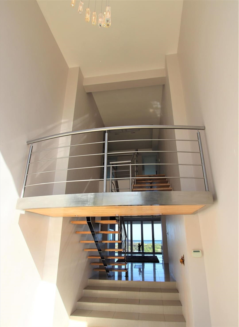 Upstairs are 3 bedrooms and a well fitted study/office, all three bedrooms are en-suite and 2 of them have the spectacular sea views to lie in the bath soaking it all in. The main bedroom is spacious and has a sitting area which opens onto a covered patio through stack doors. The en suite bathroom boasts a freestanding bath, shower, loo and bidet, the showers in all the bathrooms are full steam rooms. Built iin cupboards have features to pull the hanging racks down to easily access the clothing, everything has been considered. 2nd bedroom is also spacious with a full en suite, this bedroom opens with stack doors onto the view patio and the 3rd bedroom has a shower en suite. Study also opens onto the view patio through stack doors.