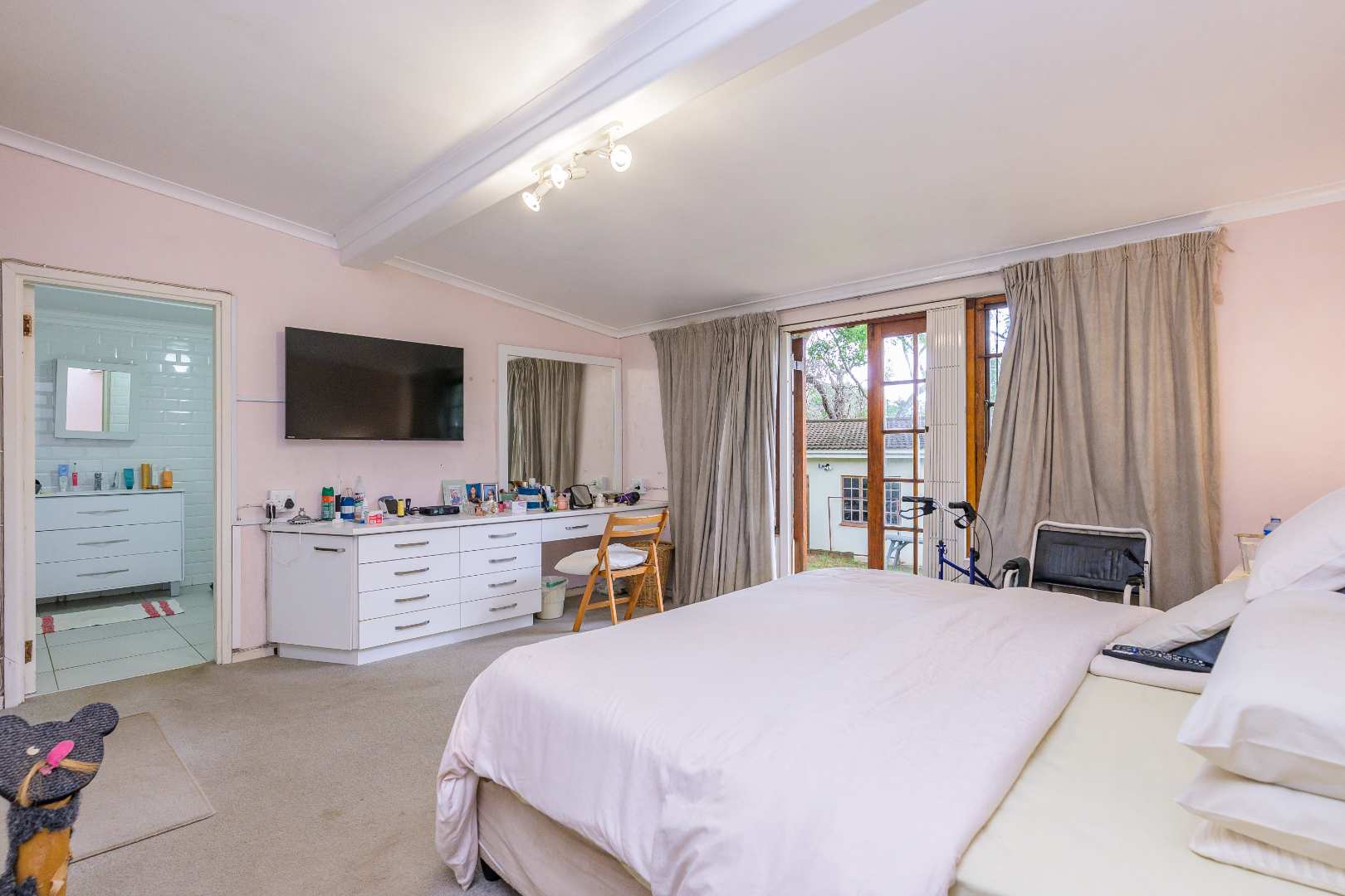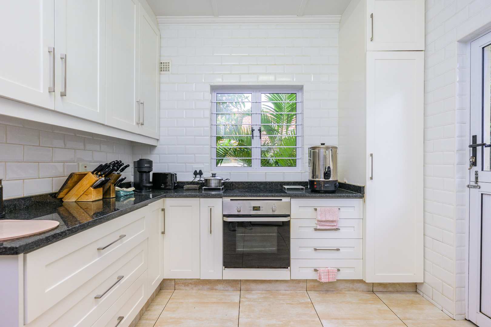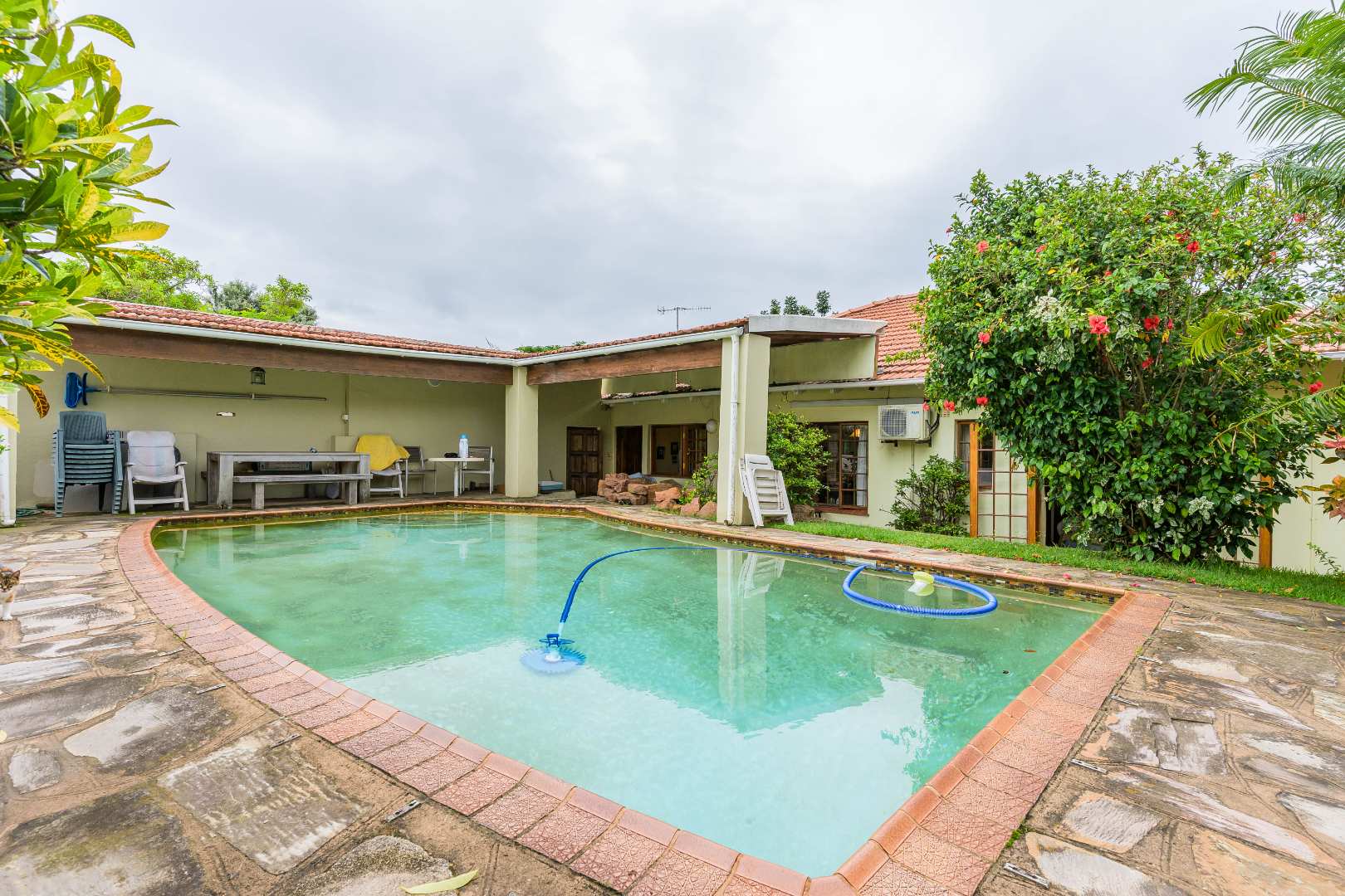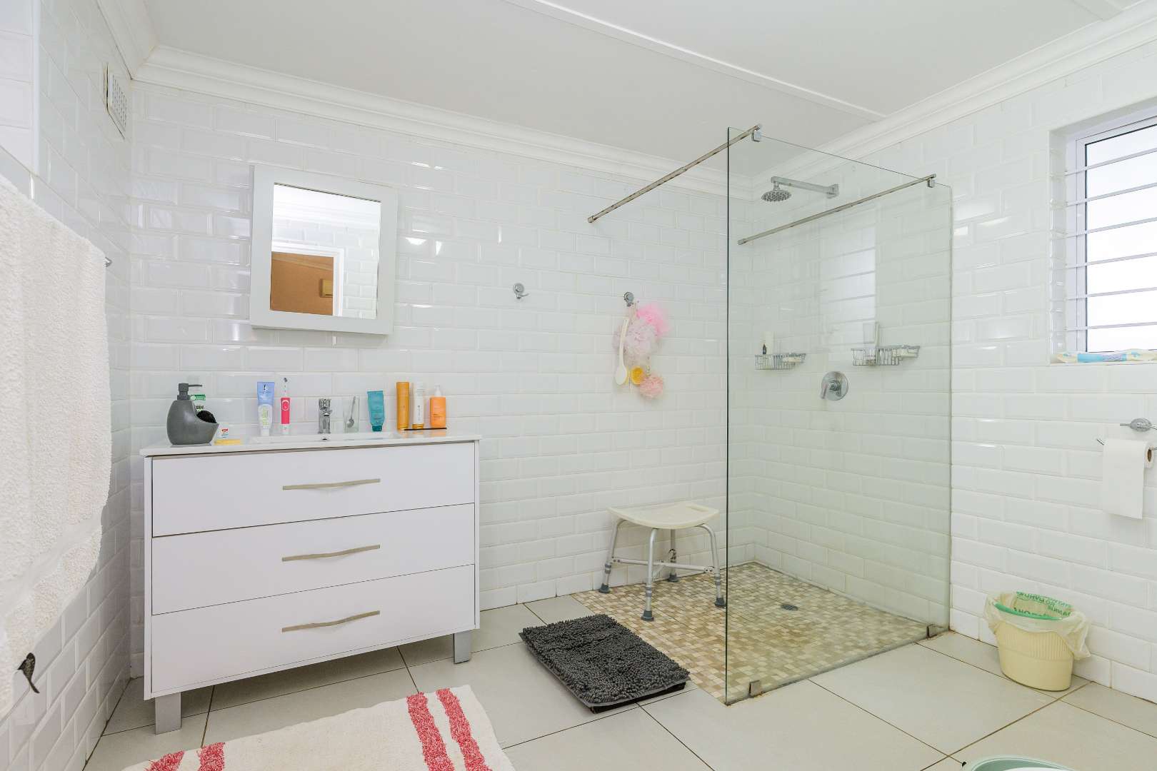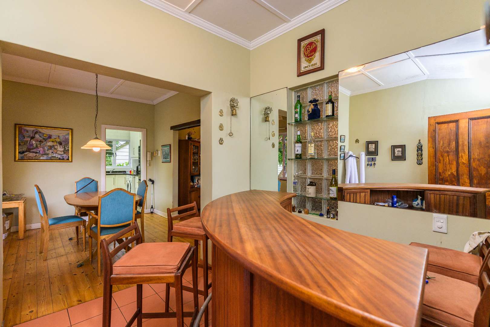 Living Room, Dining Room and Bar with sliding windows looking out over the large pool and covered Braai Area. Living Room and dining room are air conditioned.