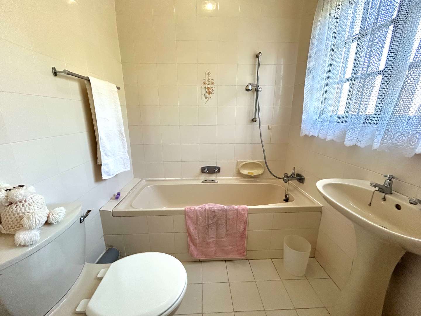 3 spacious bedrooms, main is en-suite with a tub and wall shower, the family bathroom has a shower. One bedroom has an aircon and the main has a ceiling fan.