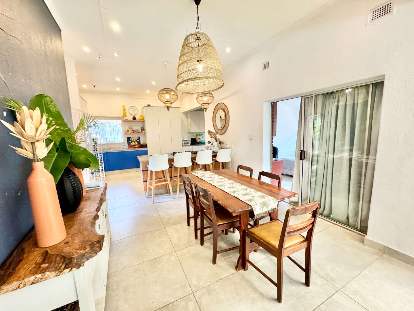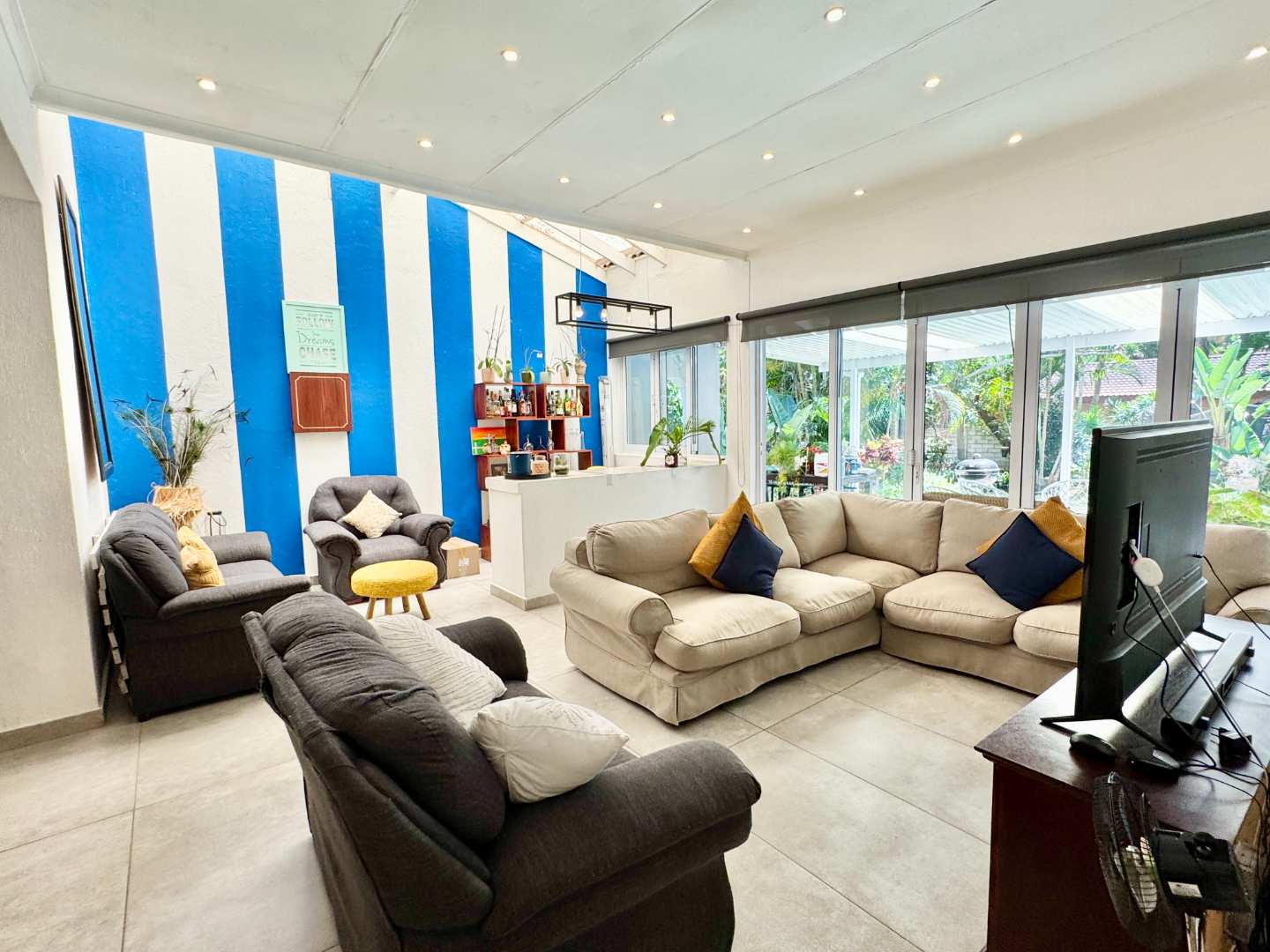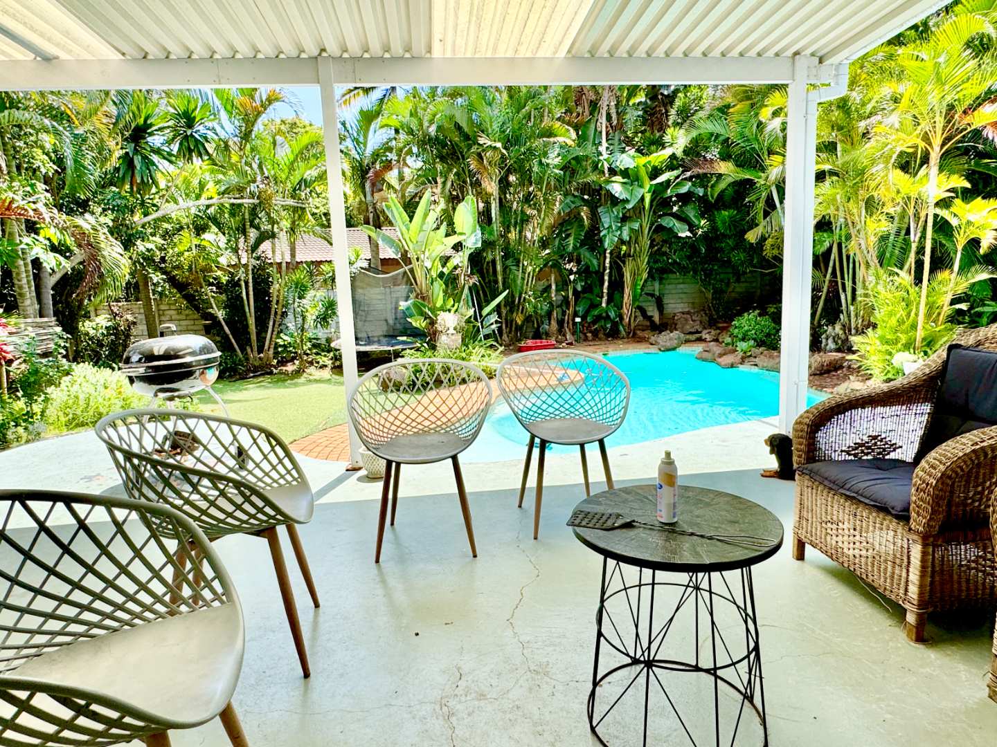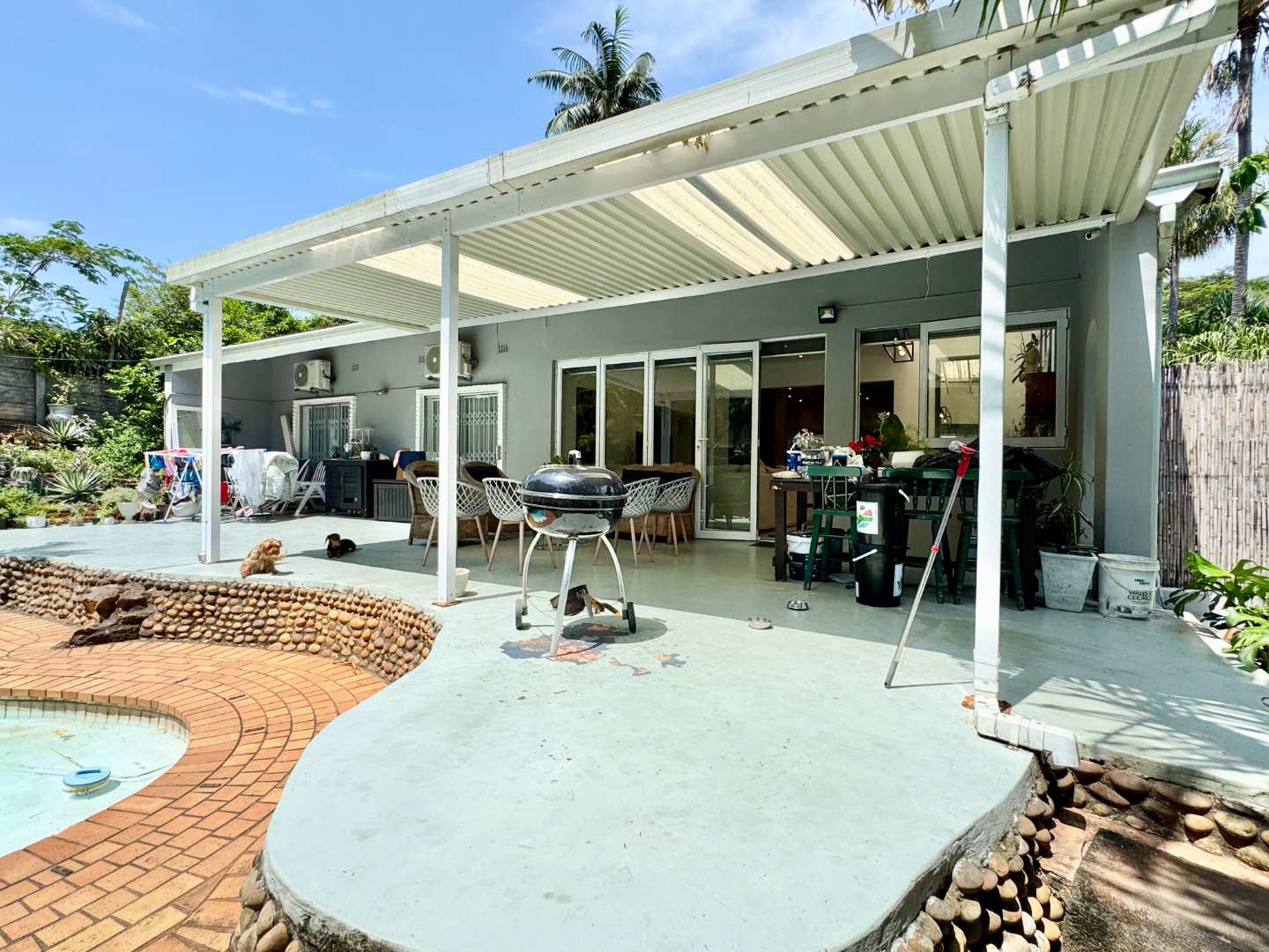 The expansive covered patio provides the perfect shaded space for year-round entertaining. Whether hosting weekend braais, family celebrations, or simply enjoying a quiet afternoon, this outdoor area is both practical and inviting.