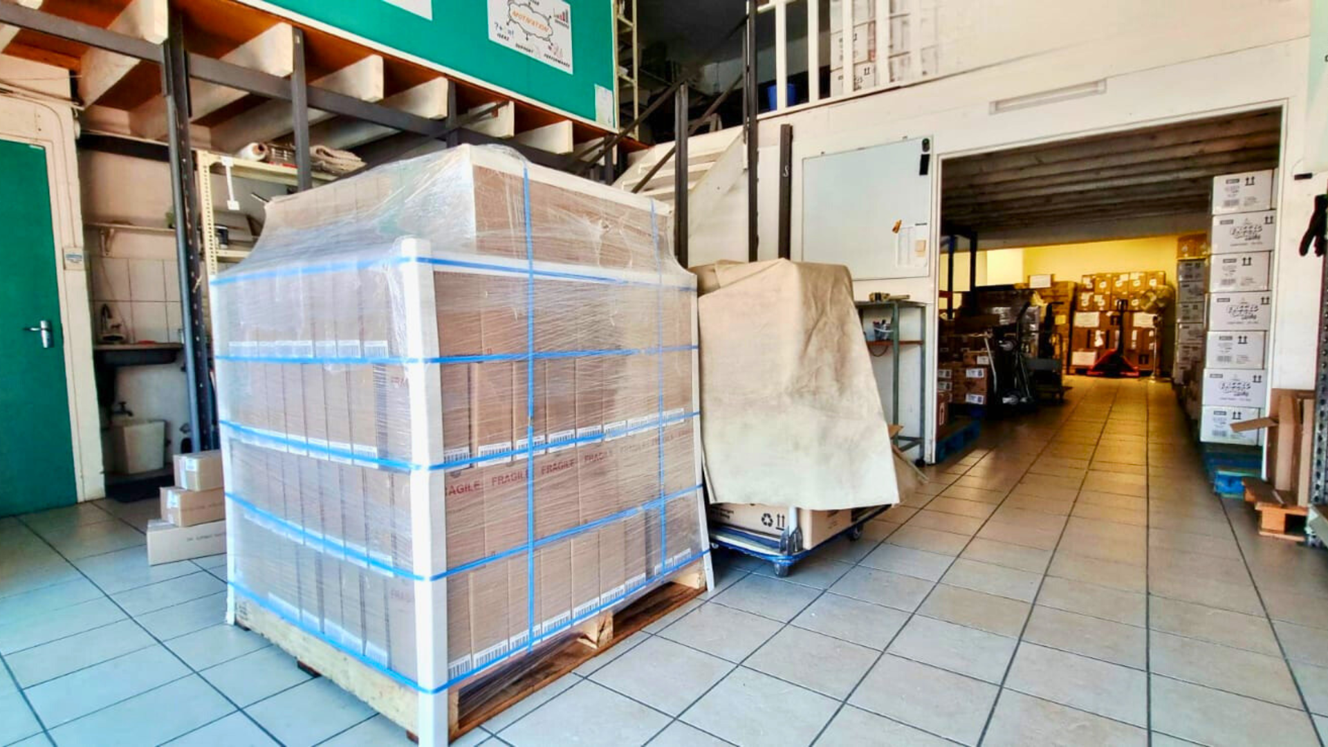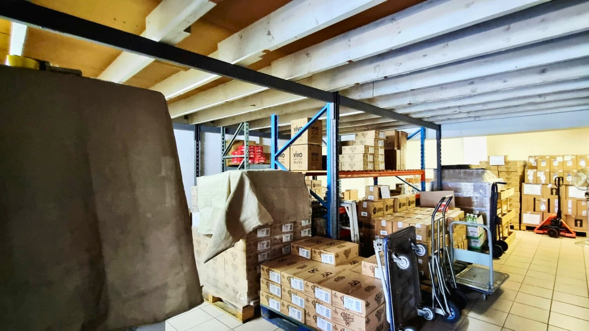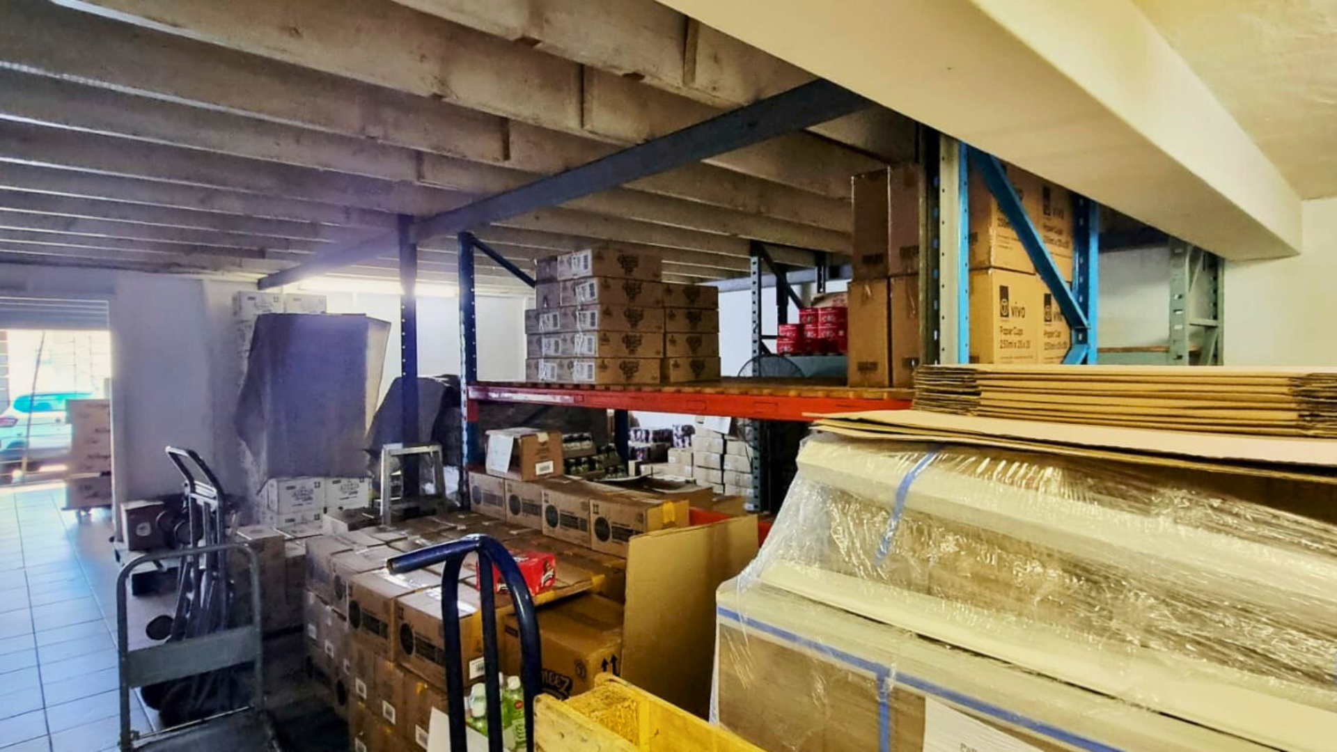 The mezzanine level separates office coordination from goods movement, allowing the business to run oversight and processing without occupying warehouse floor space. This creates a structured workflow where administration and handling no longer compete for the same area.