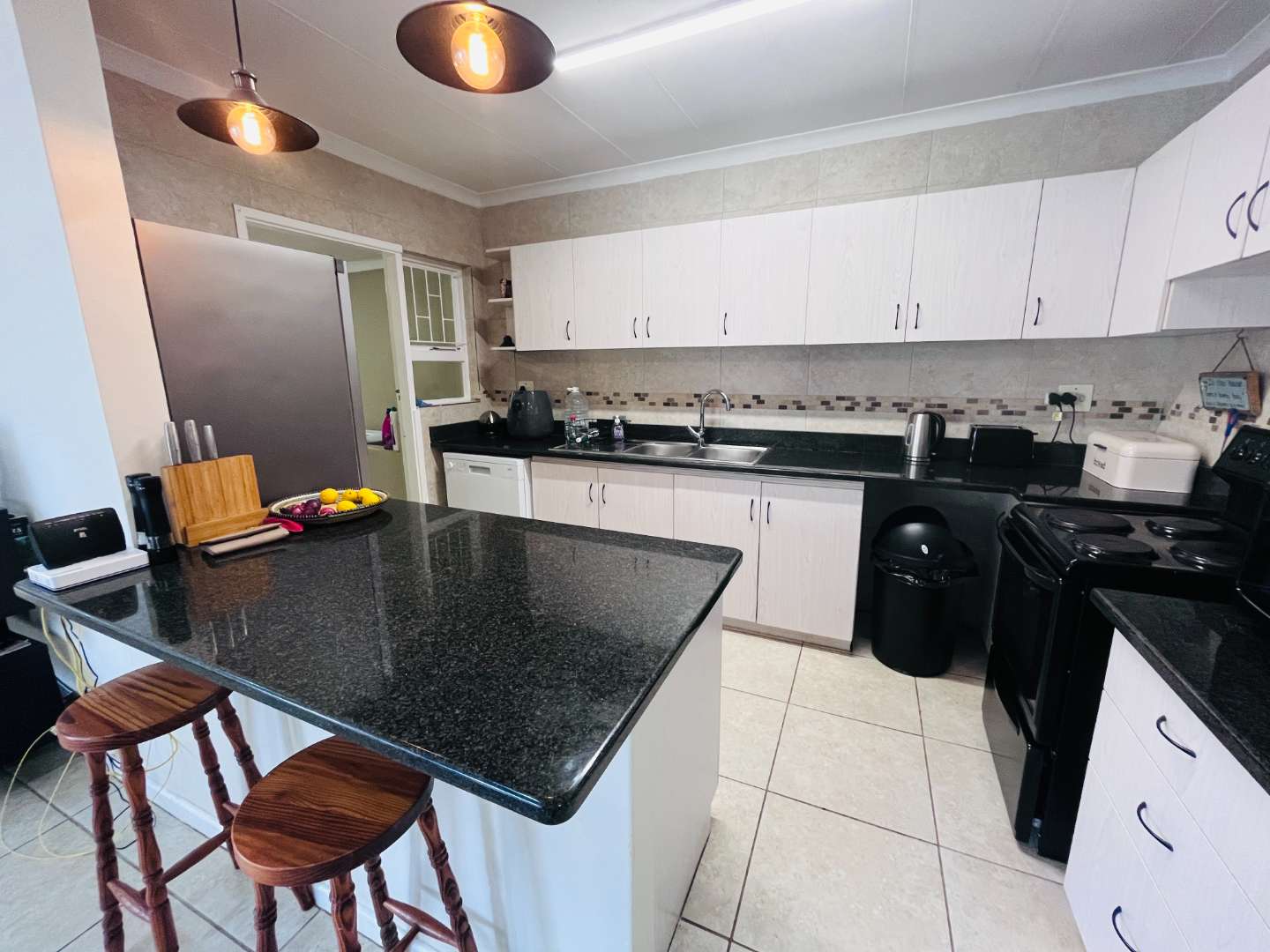 * Modern Kitchen: Featuring sleek granite countertops, ample cabinetry, and a dedicated laundry area
