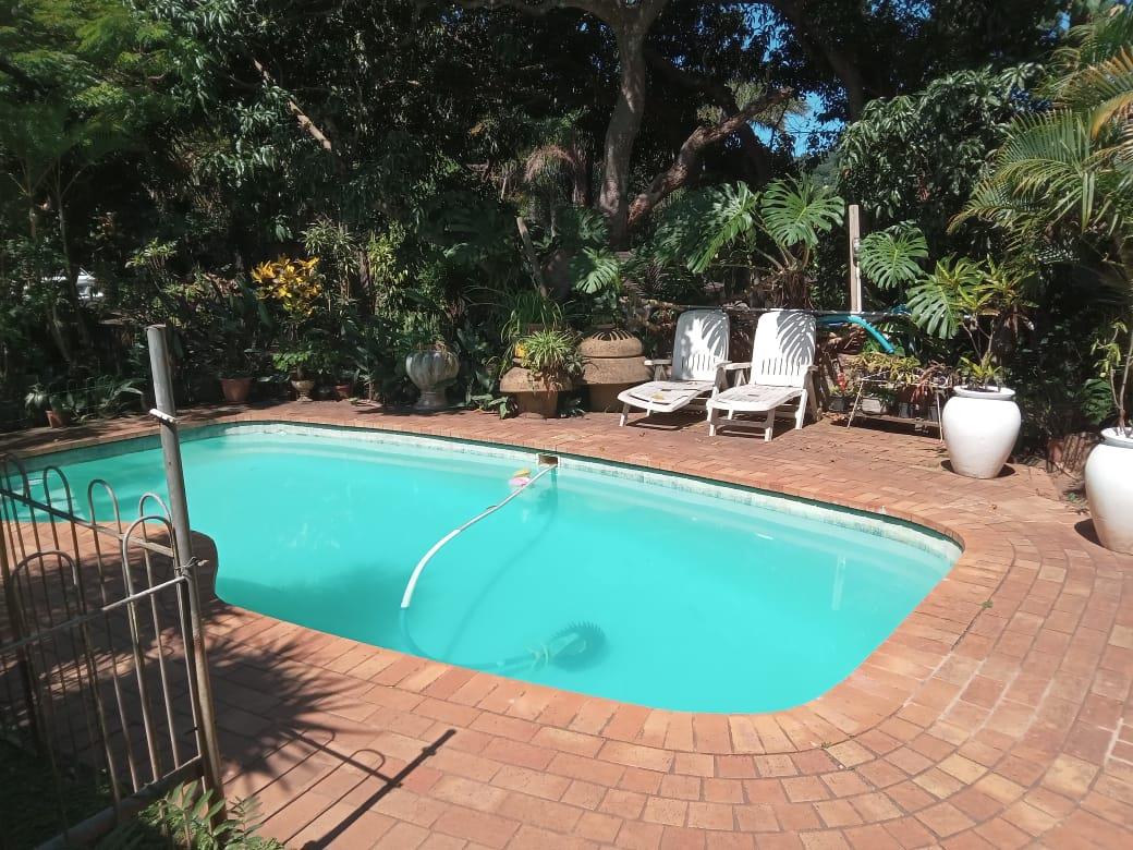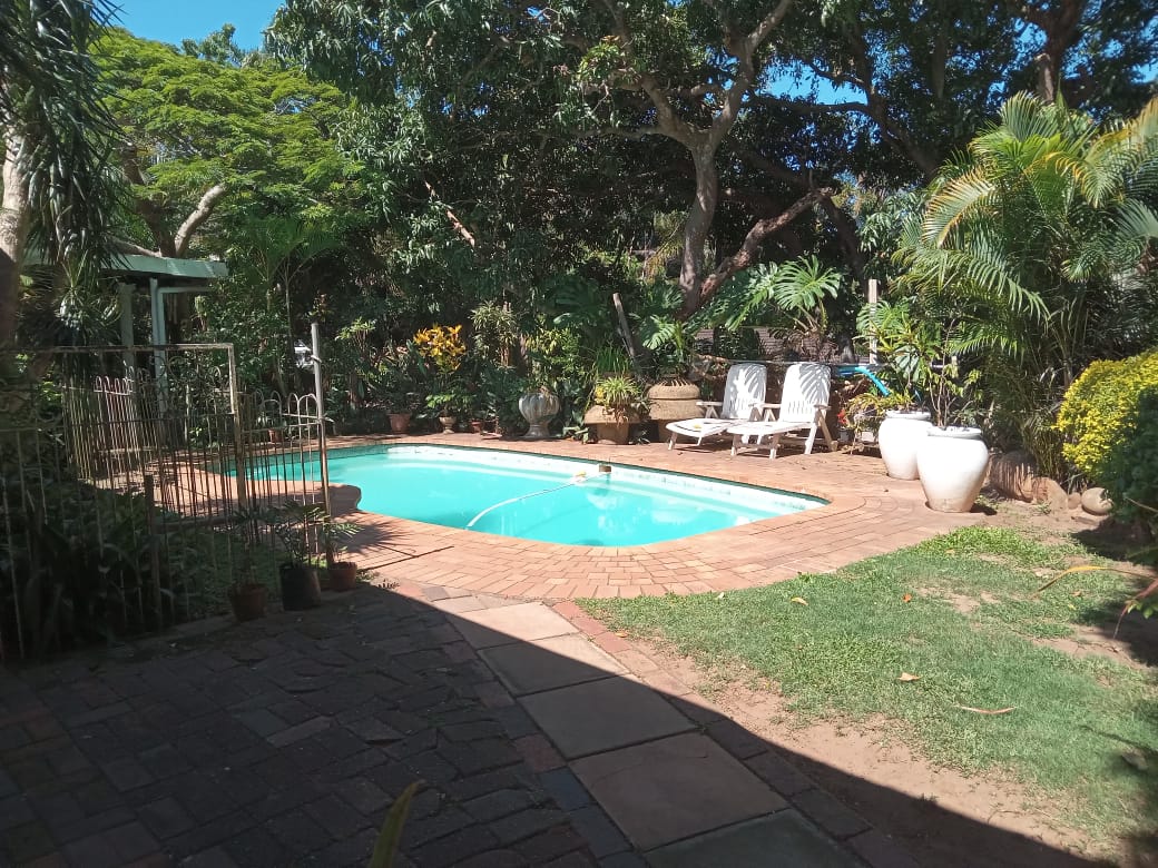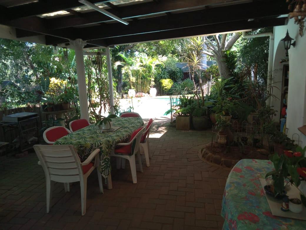 Enjoy the seamless transition from indoor to outdoor living as the lounge opens onto a covered patio. This inviting space overlooks a low-maintenance tropical garden and sparkling pool area, perfect for entertaining or unwinding after a long day.