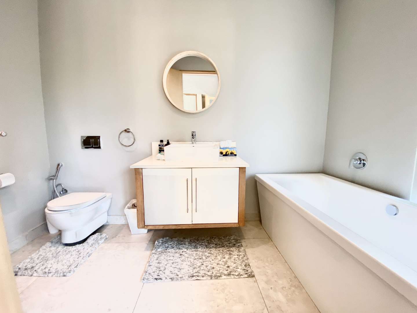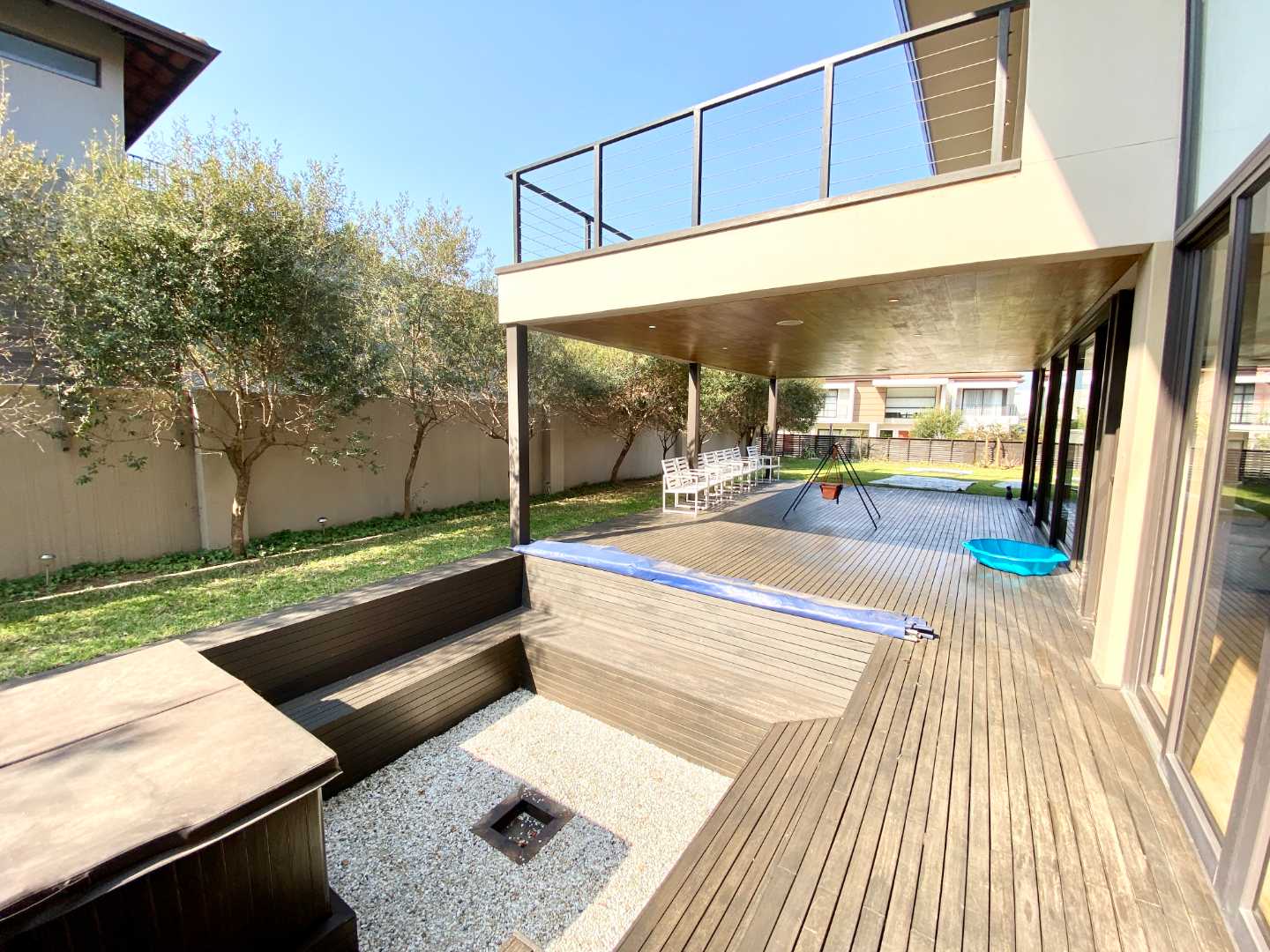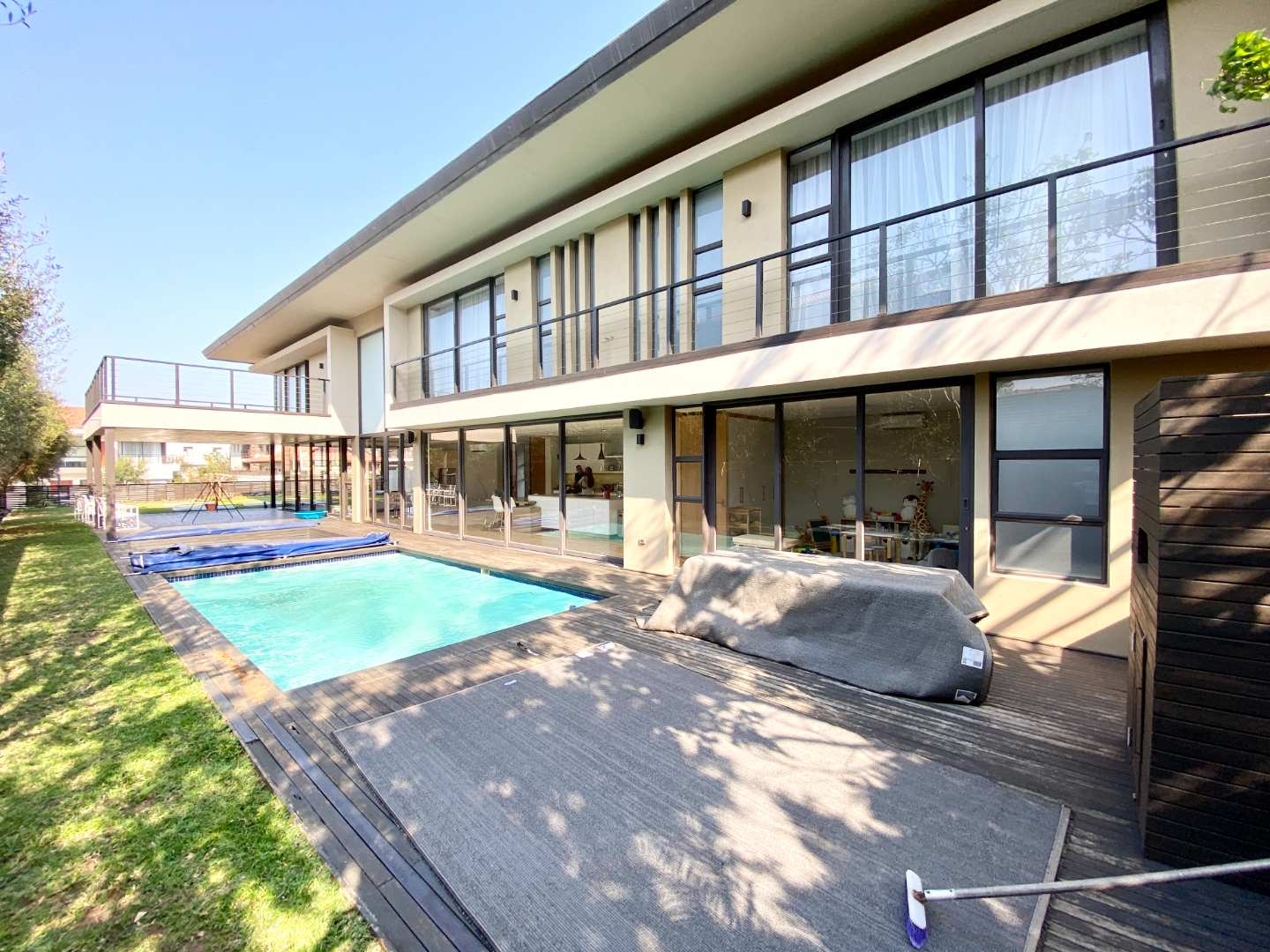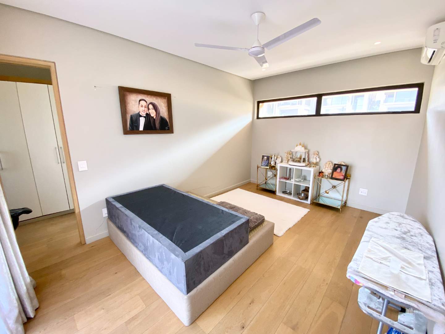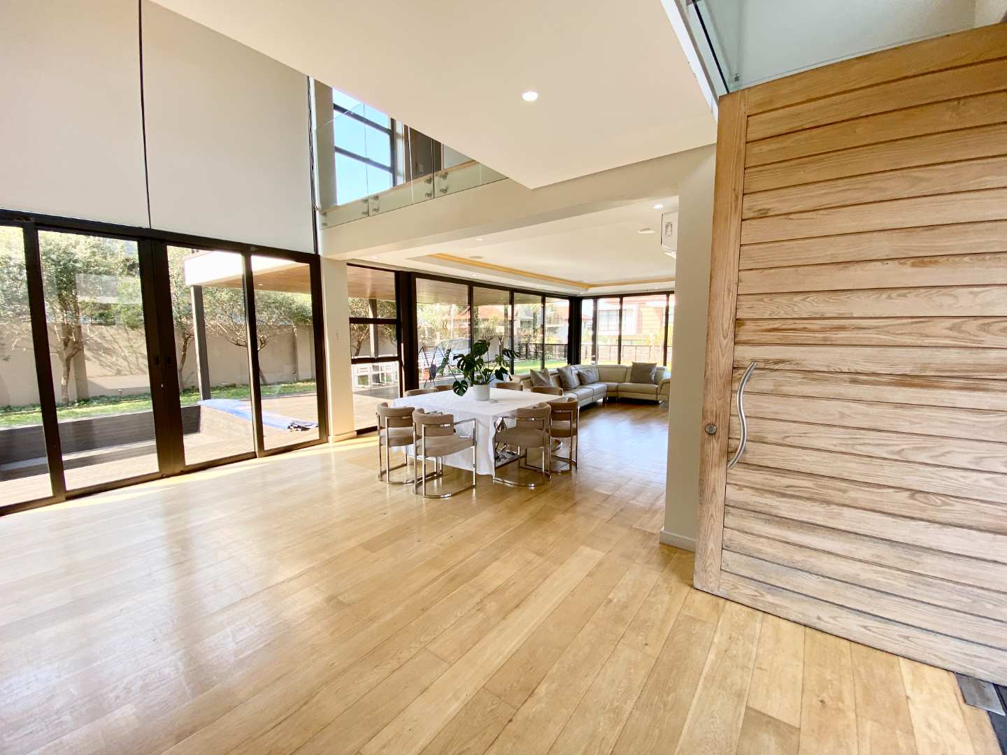 Downstairs consists of an en-suite guest bedroom, guest toilet and an open-plan living area with floor-to-ceiling windows which invite the outside in, casting a soft, natural glow across the whole room and kitchen area which posses a grand kitchen island offering ample counter and storage space in a minimalistic appearance, separate scullery and laundry area.