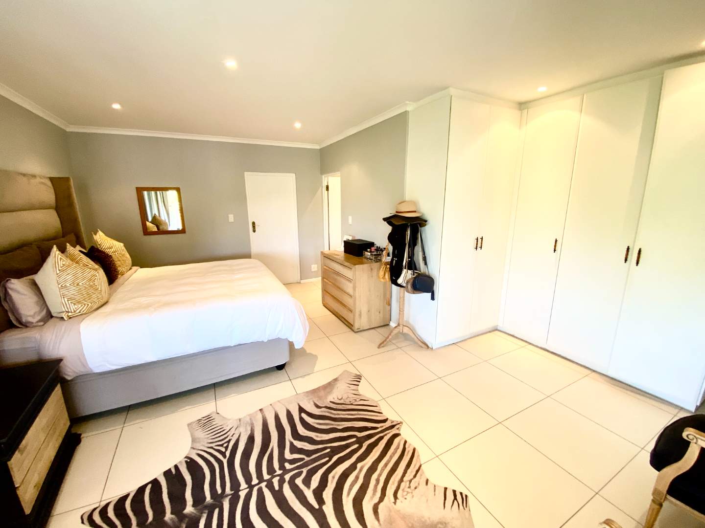The well-appointed kitchen is complemented by a generous scullery, thoughtfully designed to function as a secondary kitchen. This practical addition keeps the main living areas sleek and uncluttered, making entertaining seamless and everyday living convenient.