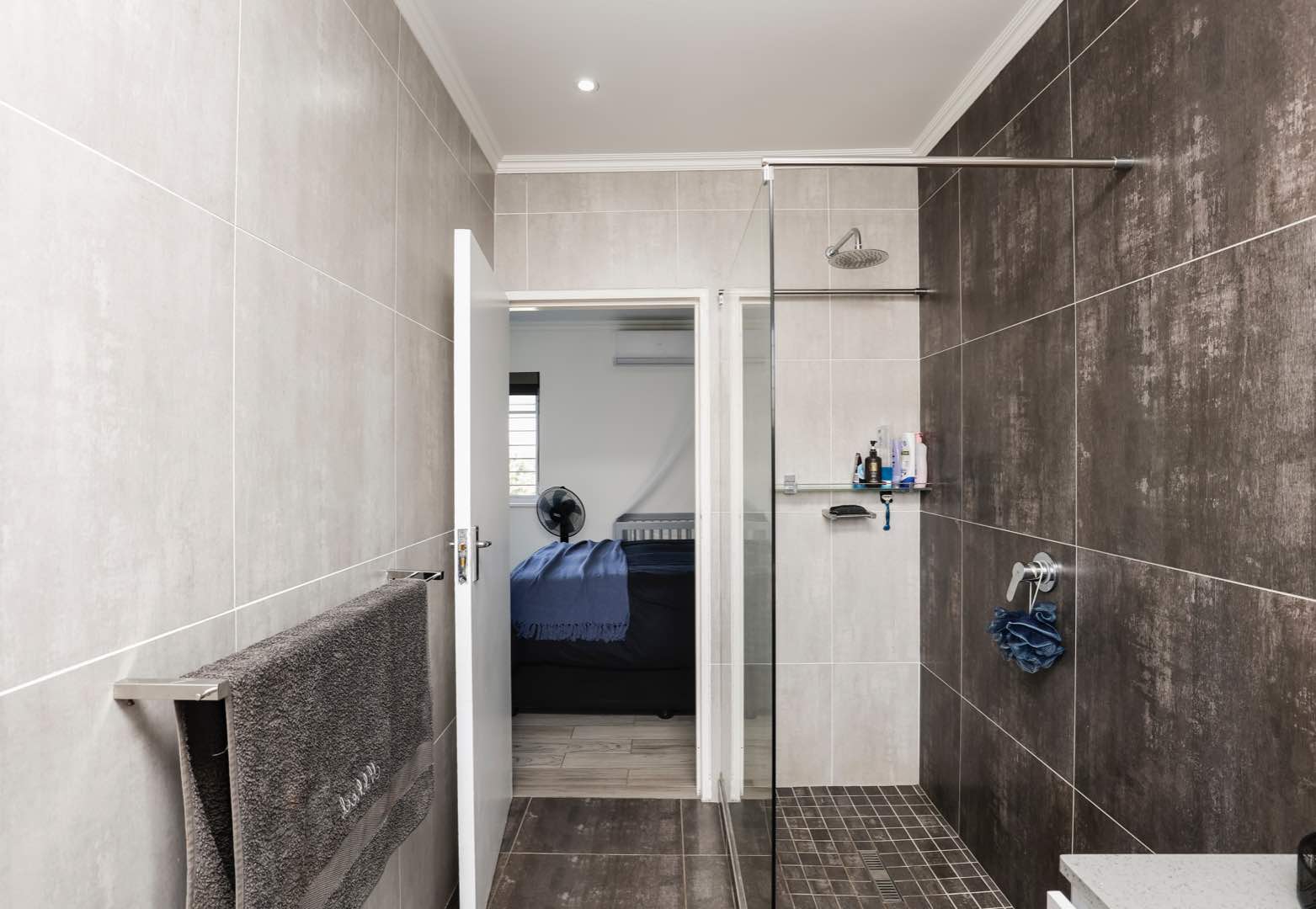 Upstairs, all bedrooms are well proportioned, fitted with built-in cupboards and split air-conditioning units, with sea views adding to the appeal.