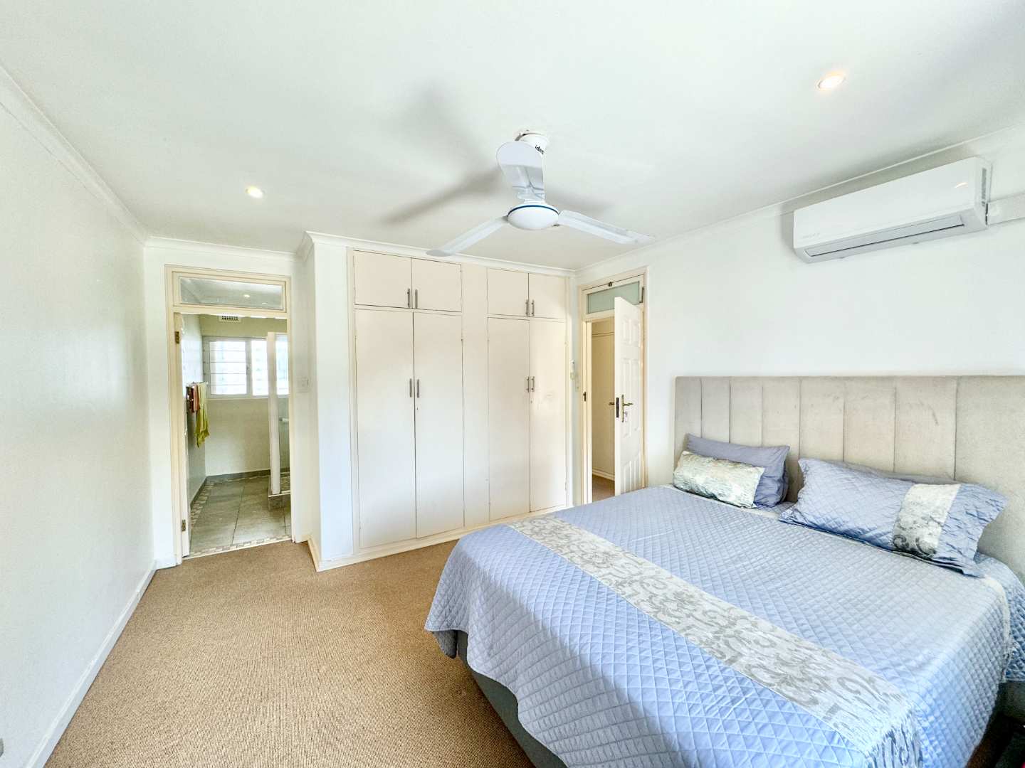 Upstairs features 3 air-conditioned, carpeted bedrooms and 2 bathrooms, with the main bedroom en-suite.