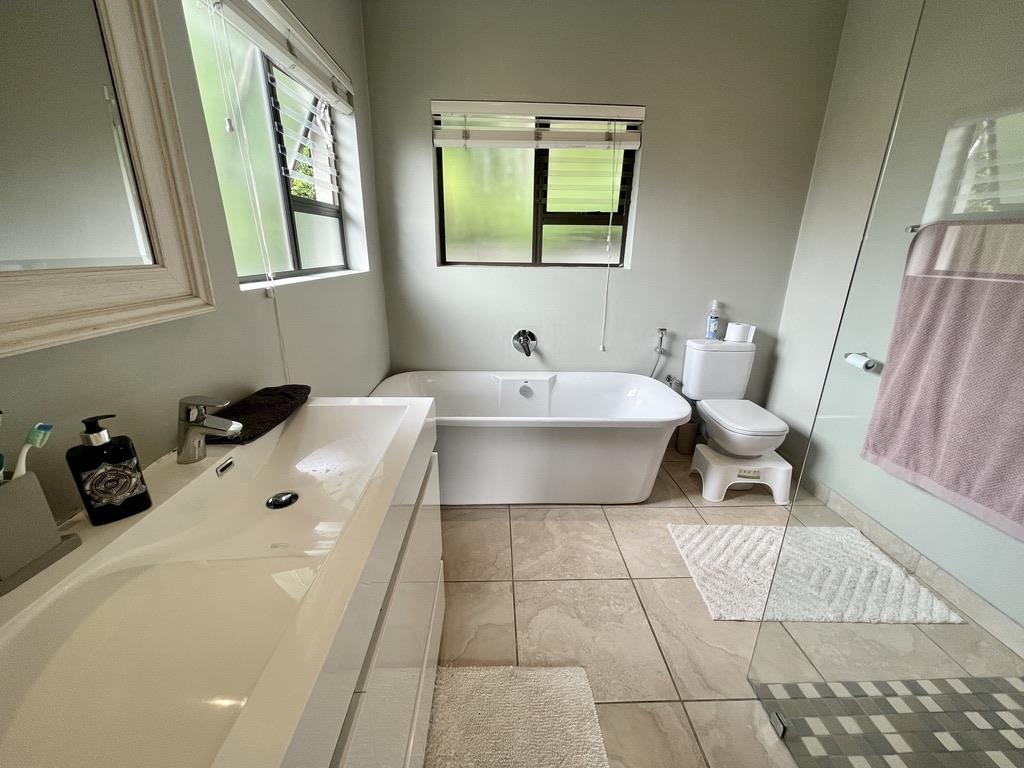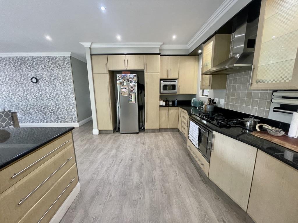 The property offers spacious living areas and a well-appointed kitchen designed for everyday functionality, with space for a double-door fridge and plumbing for a dishwasher, washing machine and tumble dryer. The kitchen is fitted with a gas stove, ideal for convenient cooking and load-shedding resilience.
