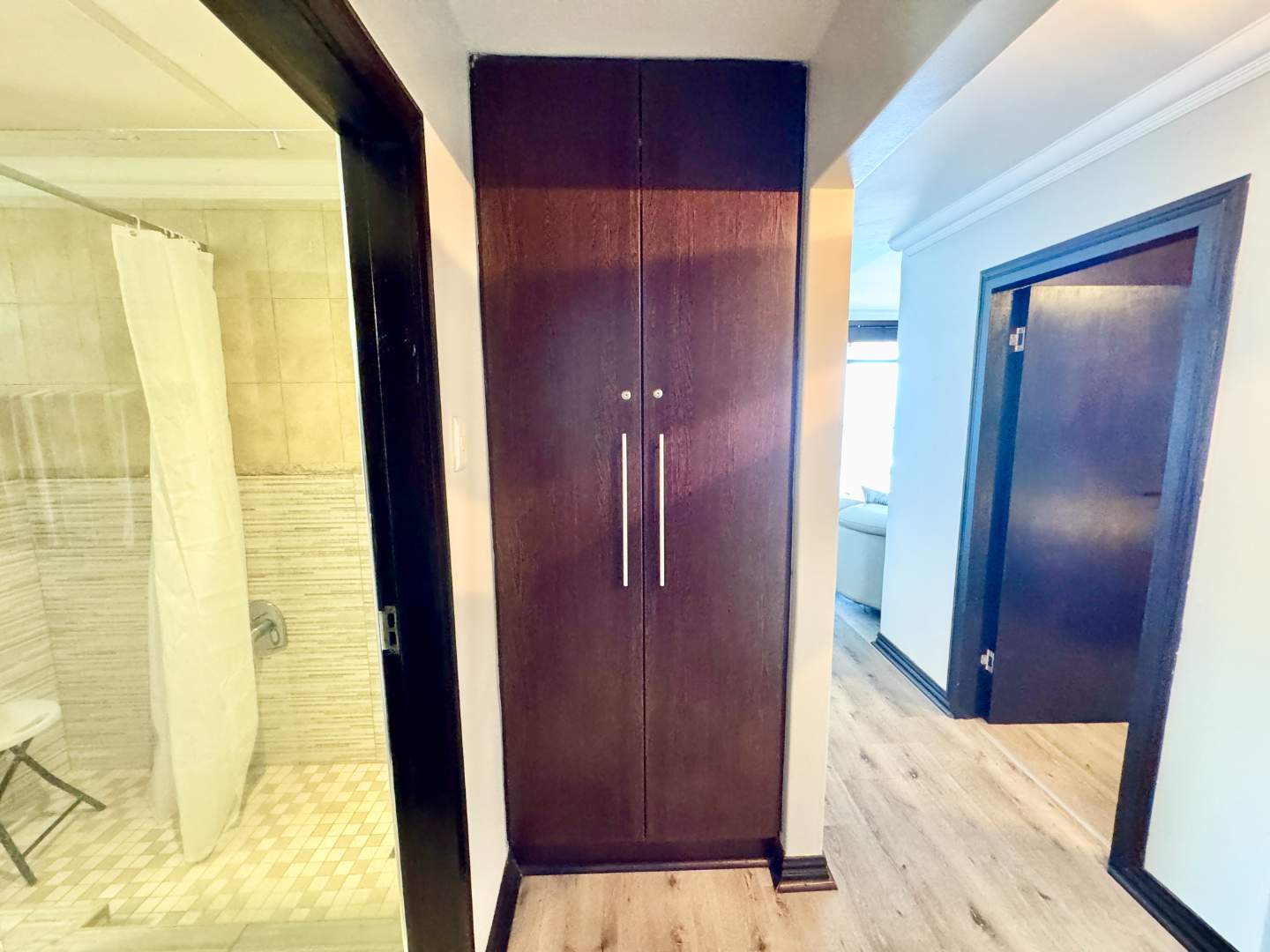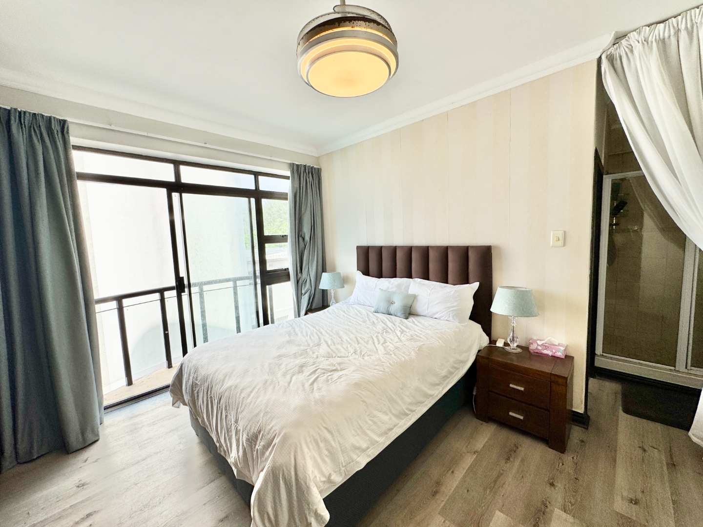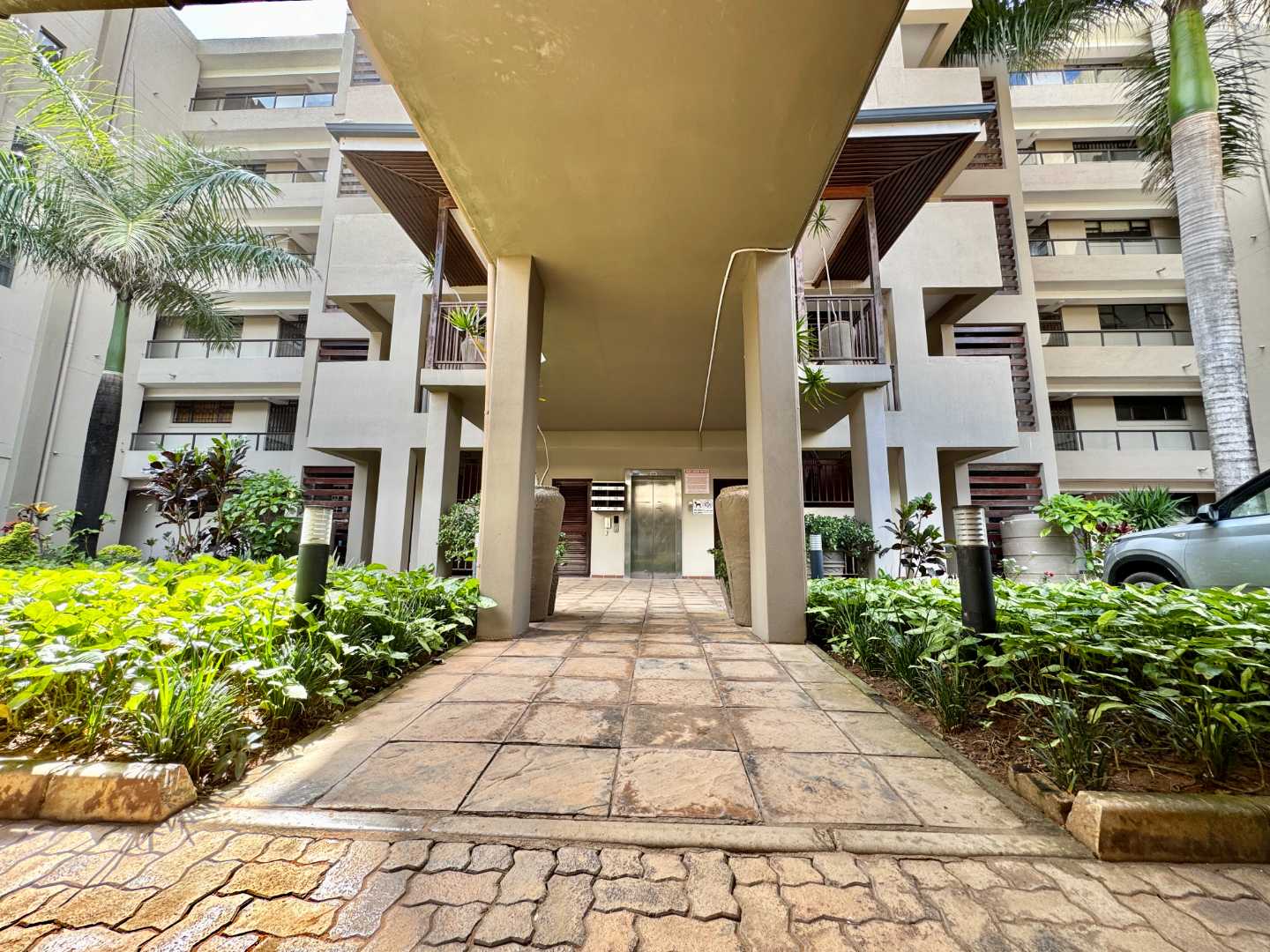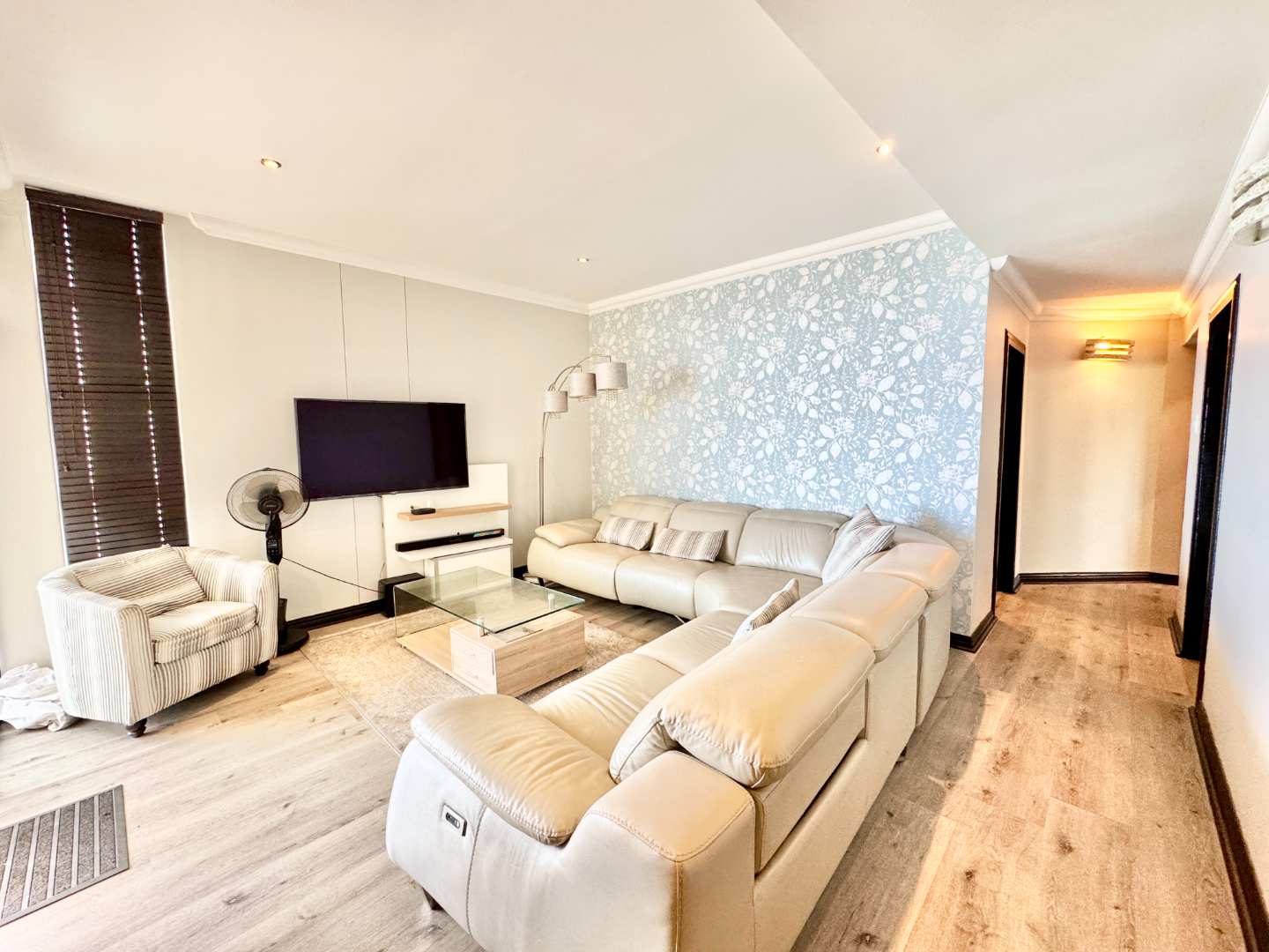 The apartment features three well-appointed bedrooms, each equipped with built-in cupboards and ceiling fans. The master bedroom boasts a full en-suite bathroom, while the other two bedrooms share a tastefully designed family bathroom with a large shower.