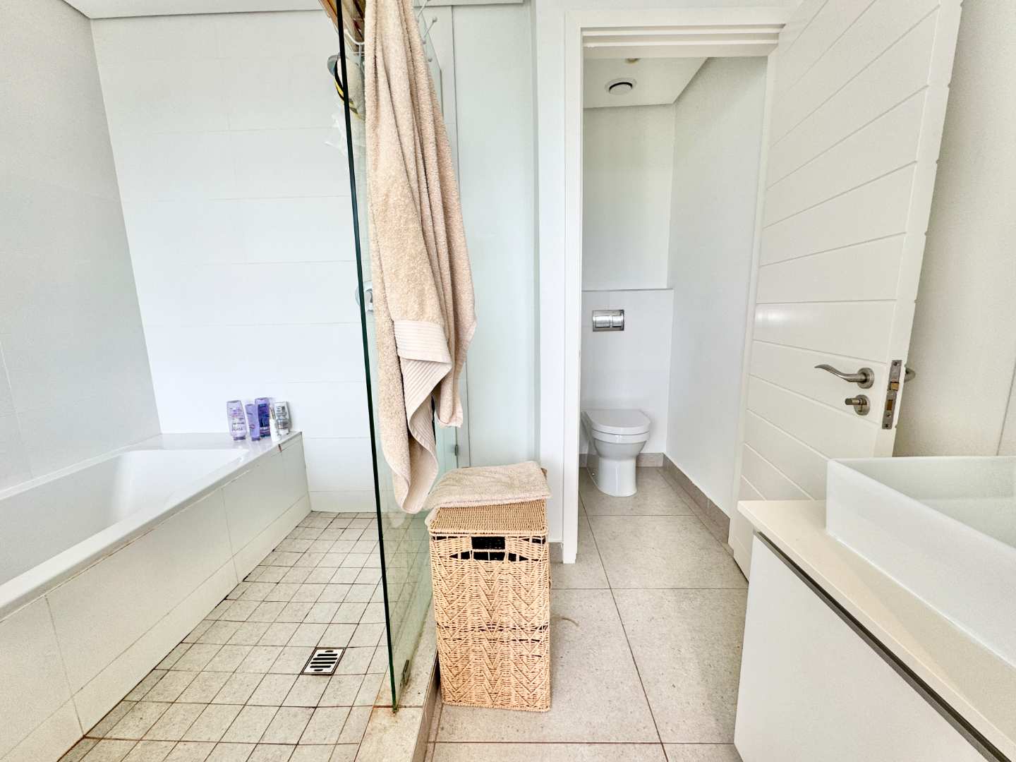 The apartment features an open-plan kitchen, dining, and living area that flows seamlessly onto a private balcony, perfect for relaxed indoor-outdoor living. Both bedrooms are well-sized with built-in cupboards, while the main bedroom includes an en-suite, open plan full bathroom and a second bathroom servicing the second bedroom.