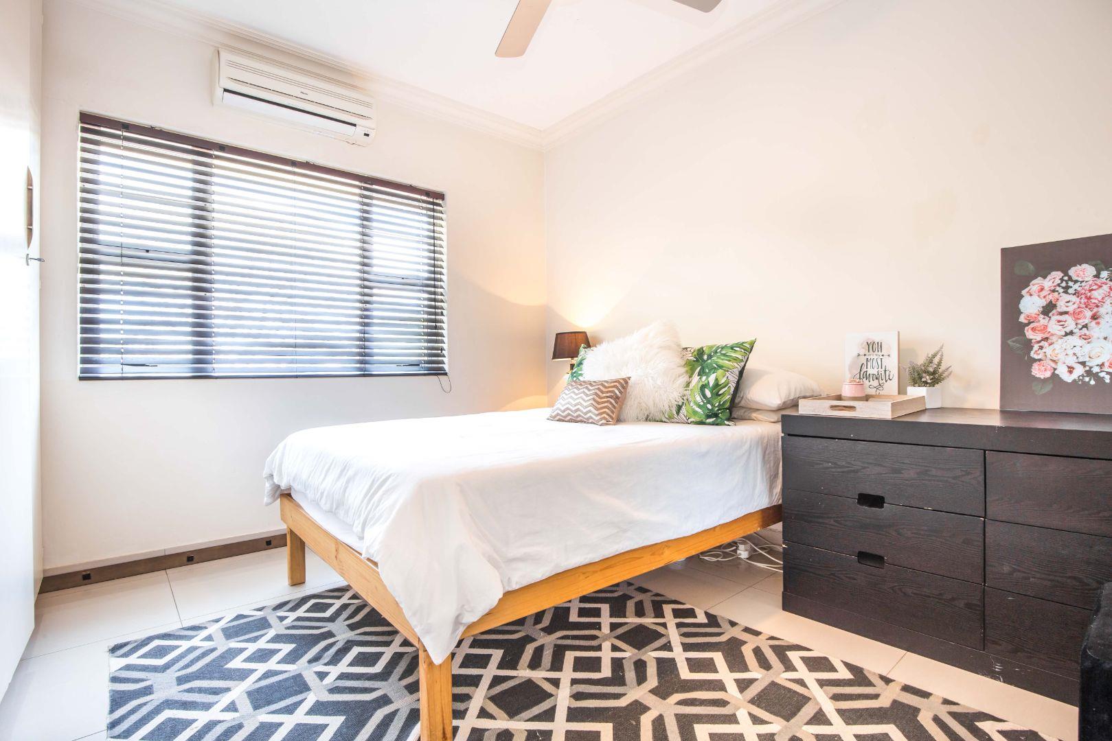 The master suite has an aircon, built in cupboards and a bathroom with a shower, toilet and basin.