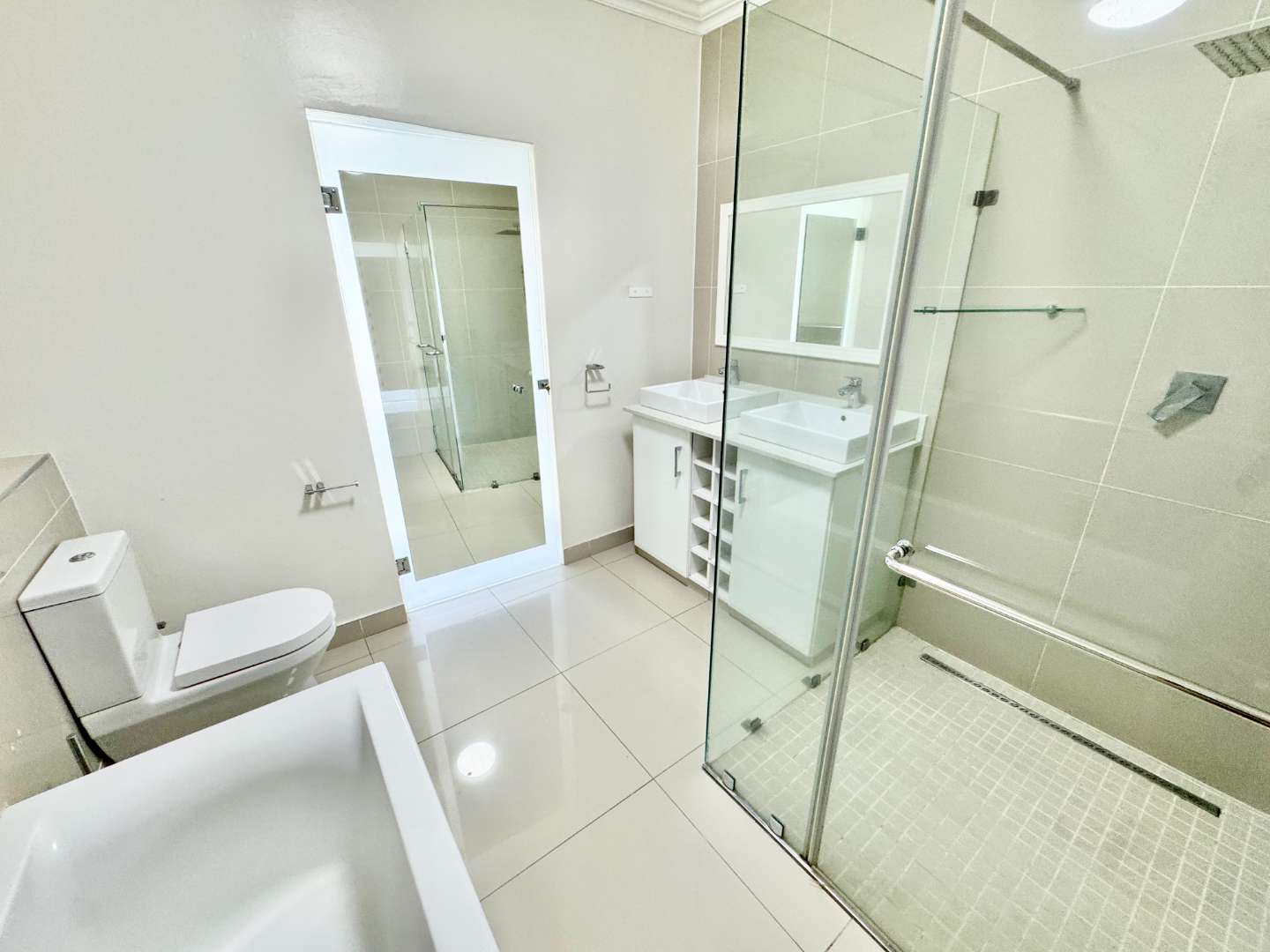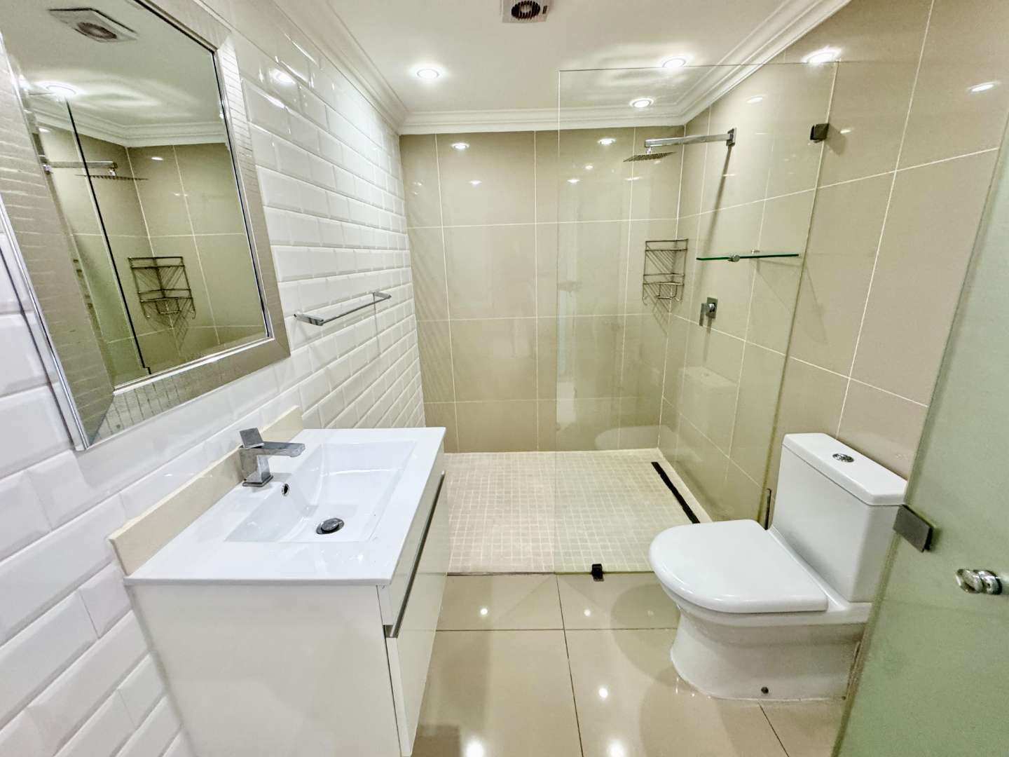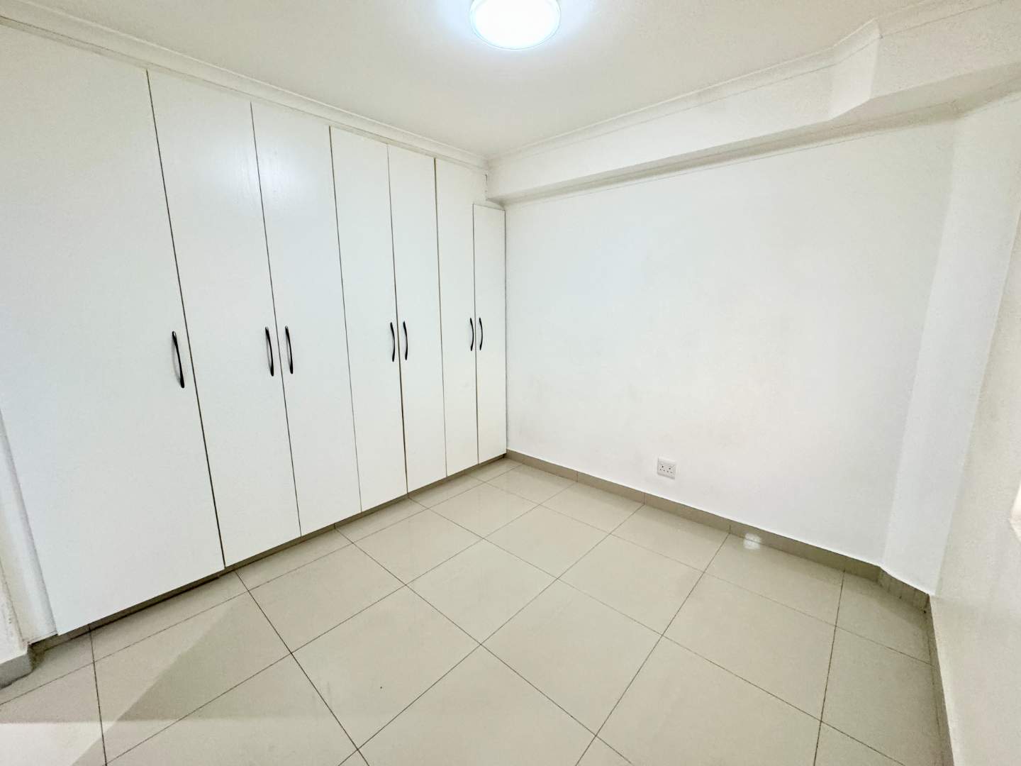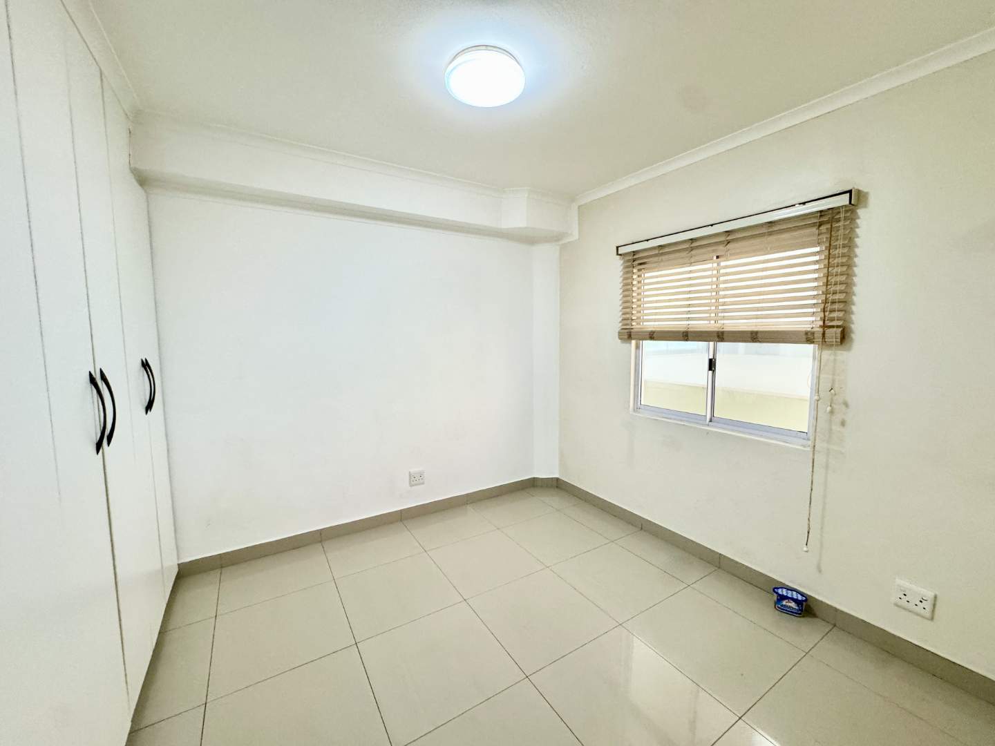 The apartment features three spacious bedrooms, including a main bedroom with a luxurious full en-suite bathroom while a shared family bathroom caters to the remaining bedrooms.