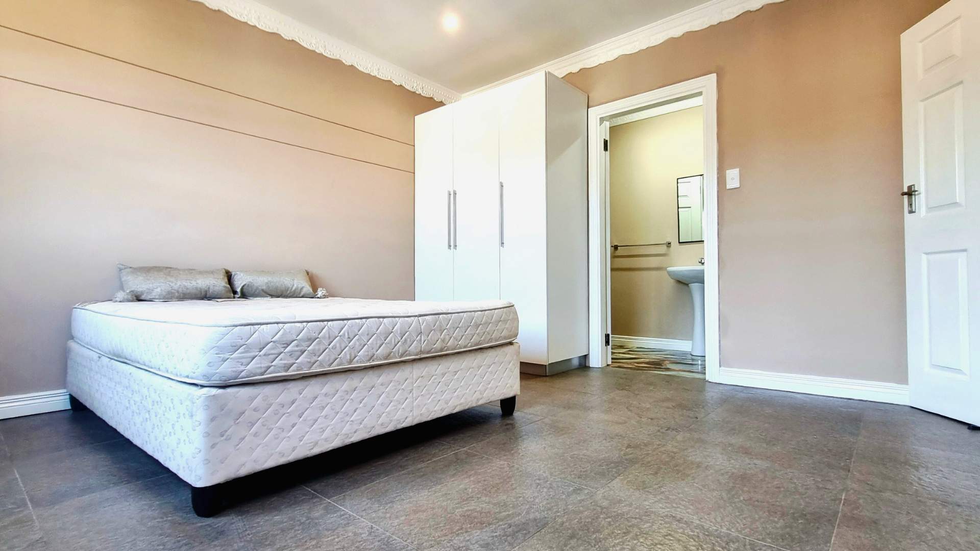 Main bedroom: built-in cupboards, fan, balcony access + en-suite (shower)