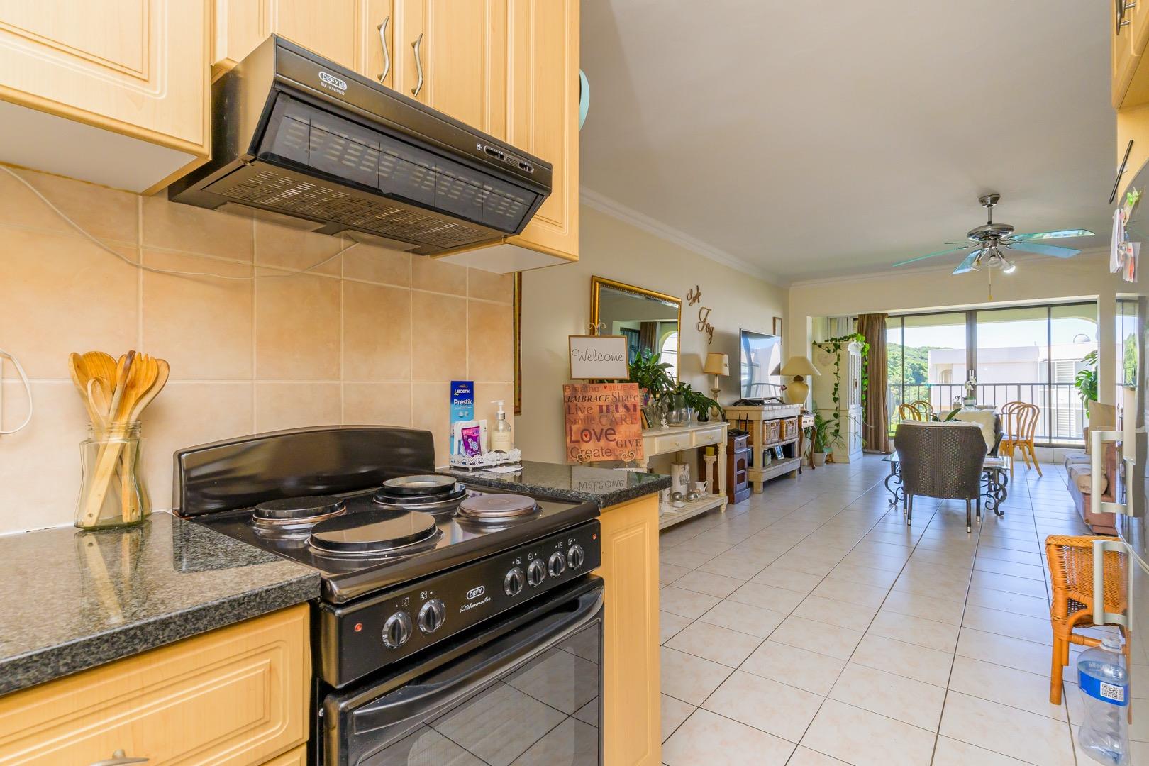The apartment features an open-plan living area that flows seamlessly to a private balcony, ideal for enjoying the coastal breeze. The modern kitchen is well fitted with ample cupboard space and contemporary finishes. Both bedrooms are generously sized, with the main bedroom offering an en-suite bathroom.