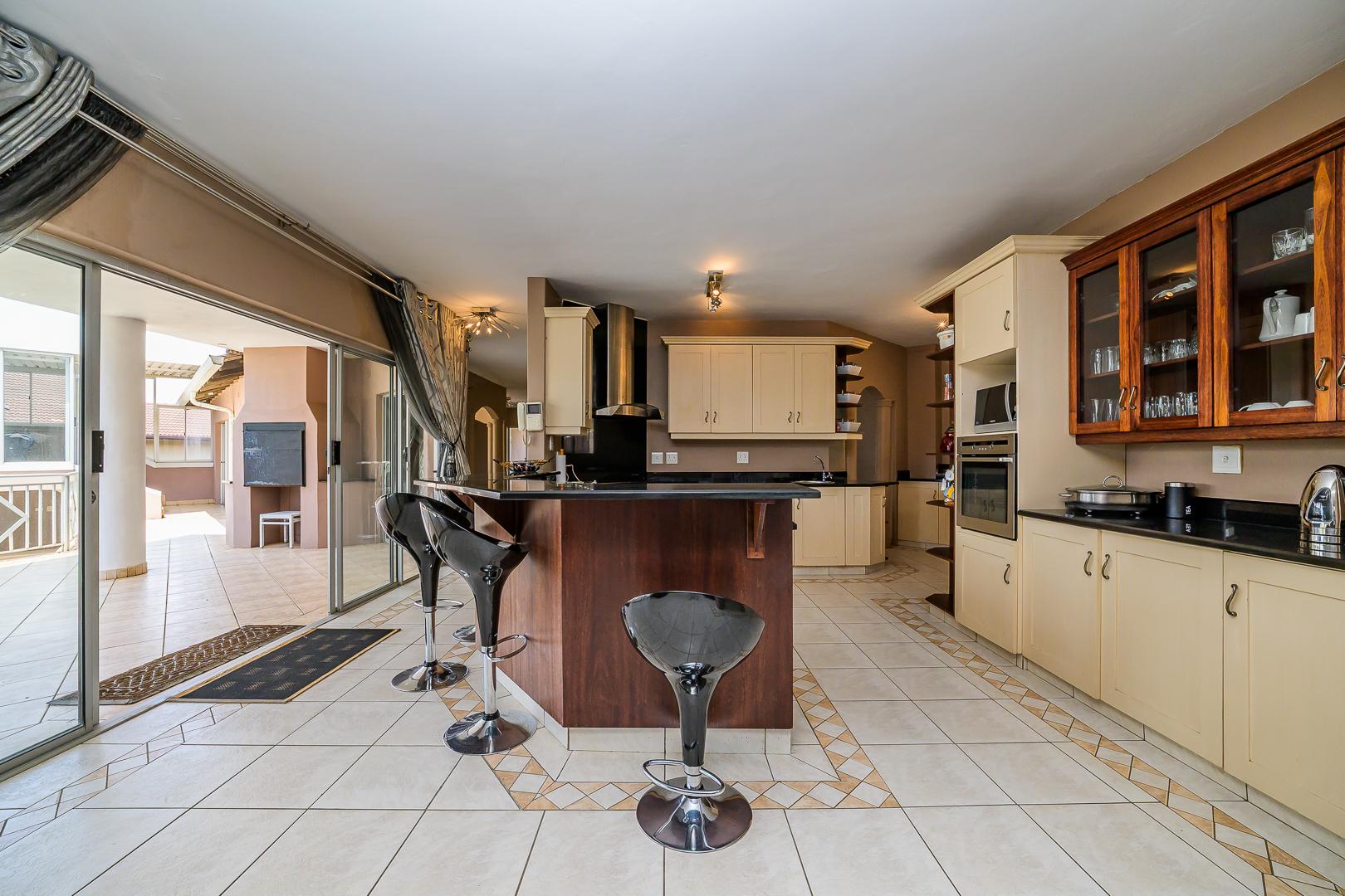 Upon entering the home, you are greeted by a seamless flow of entertainment areas that effortlessly connect and lead to the resort-style poolside entertainment area, complete with a generous sunroom, a bar area, a covered patio, and a built-in braai.