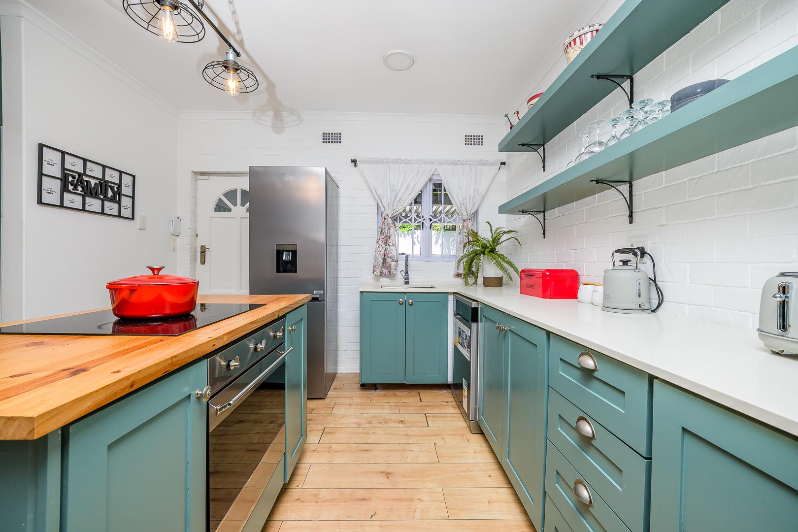 The open-plan kitchen is both stylish and functional, featuring: