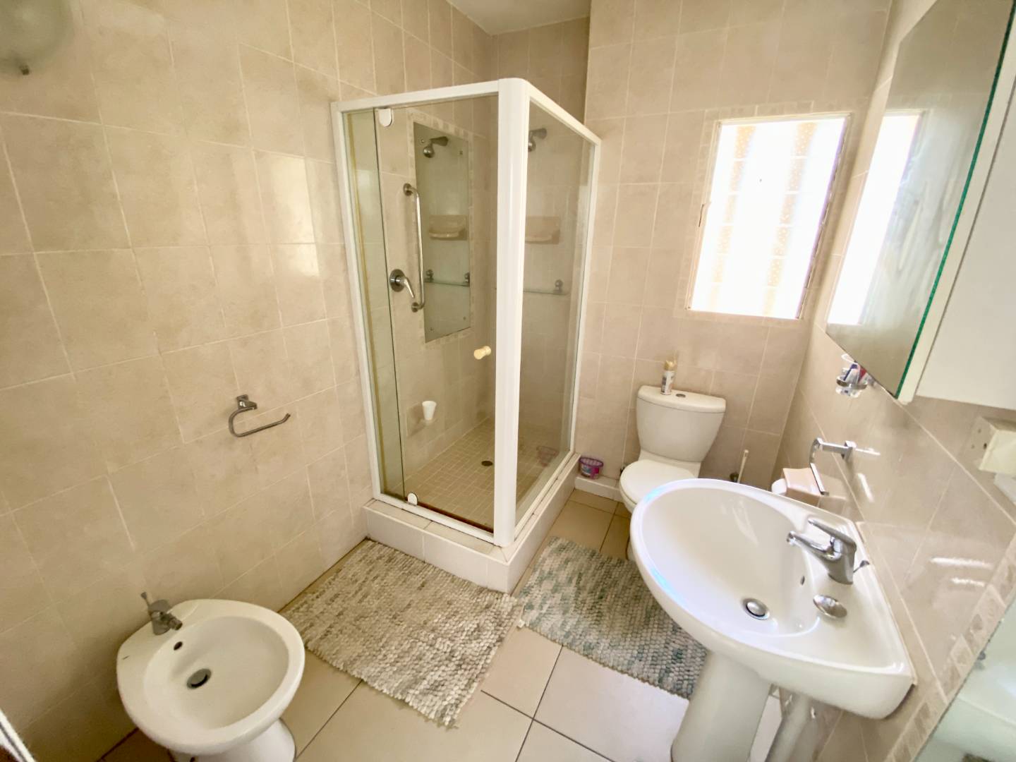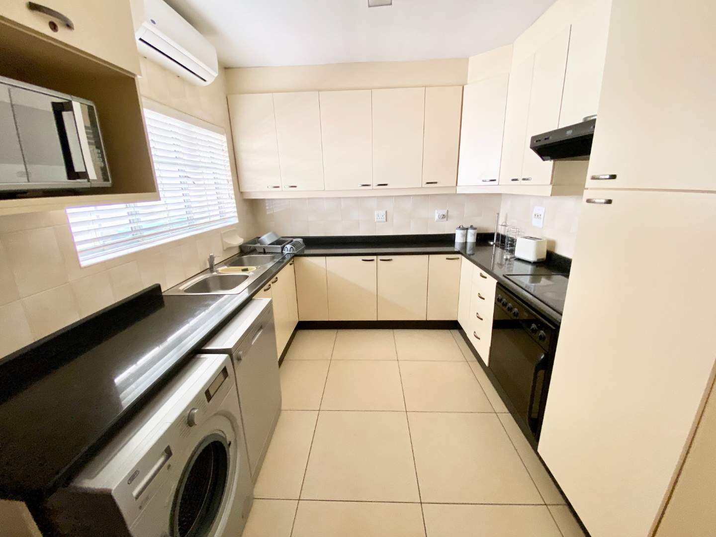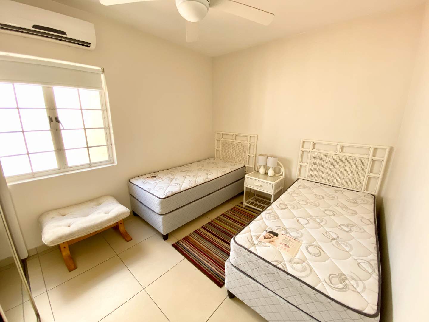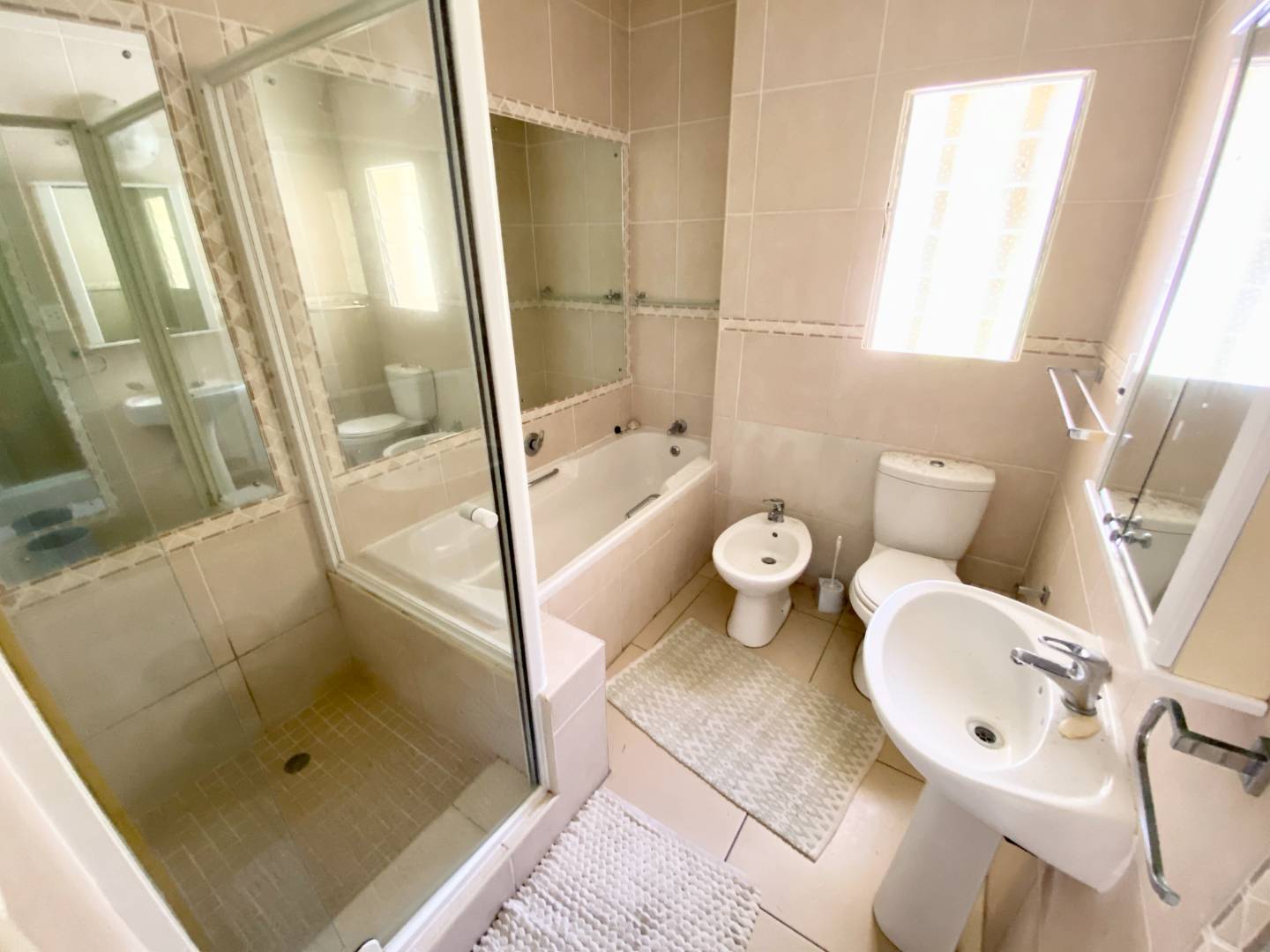 Venture upstairs to discover a second en-suite bedroom and a third bedroom, each equipped with ceiling fans and built-in cupboards. The entire unit is fully air-conditioned, ensuring comfort year-round.
