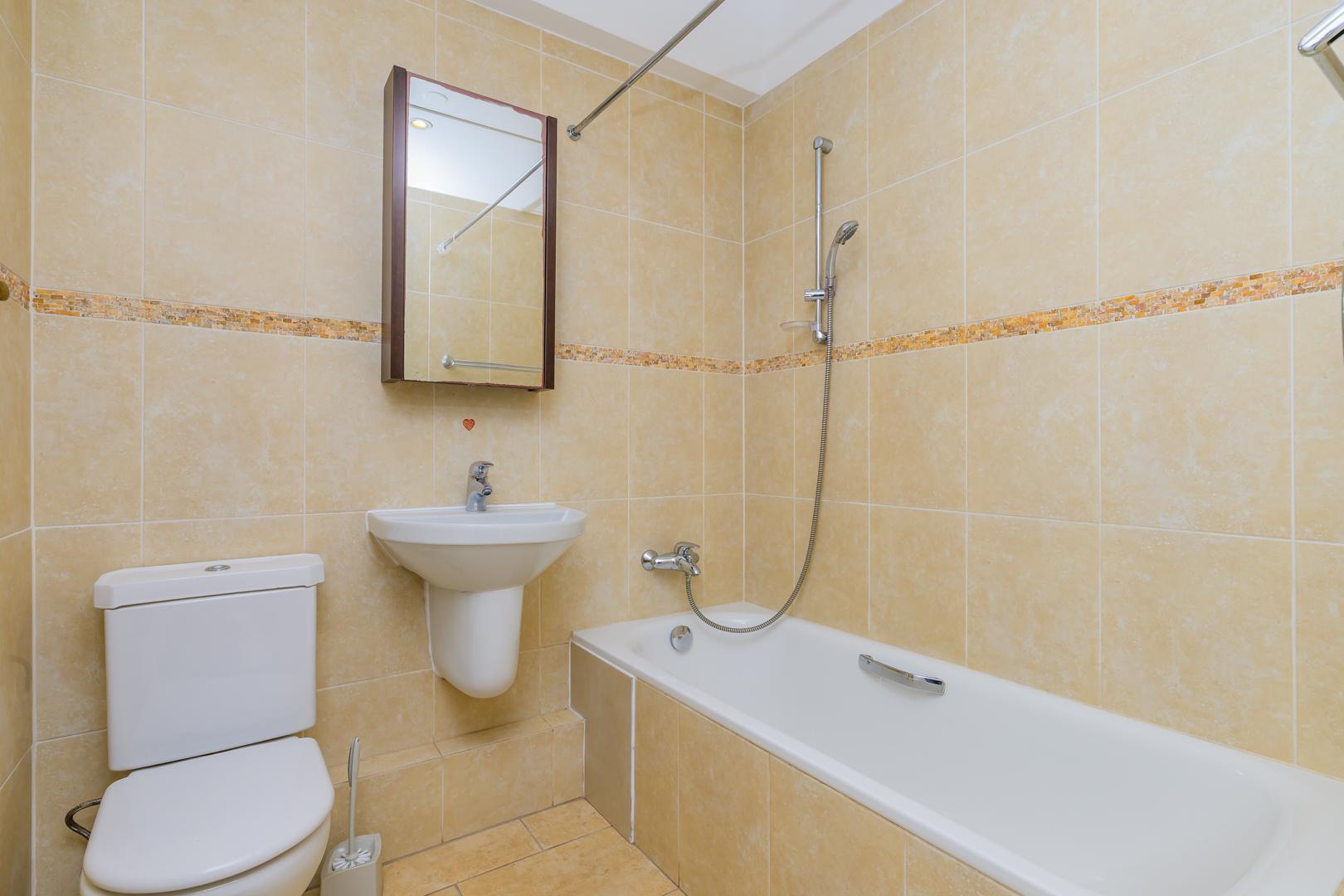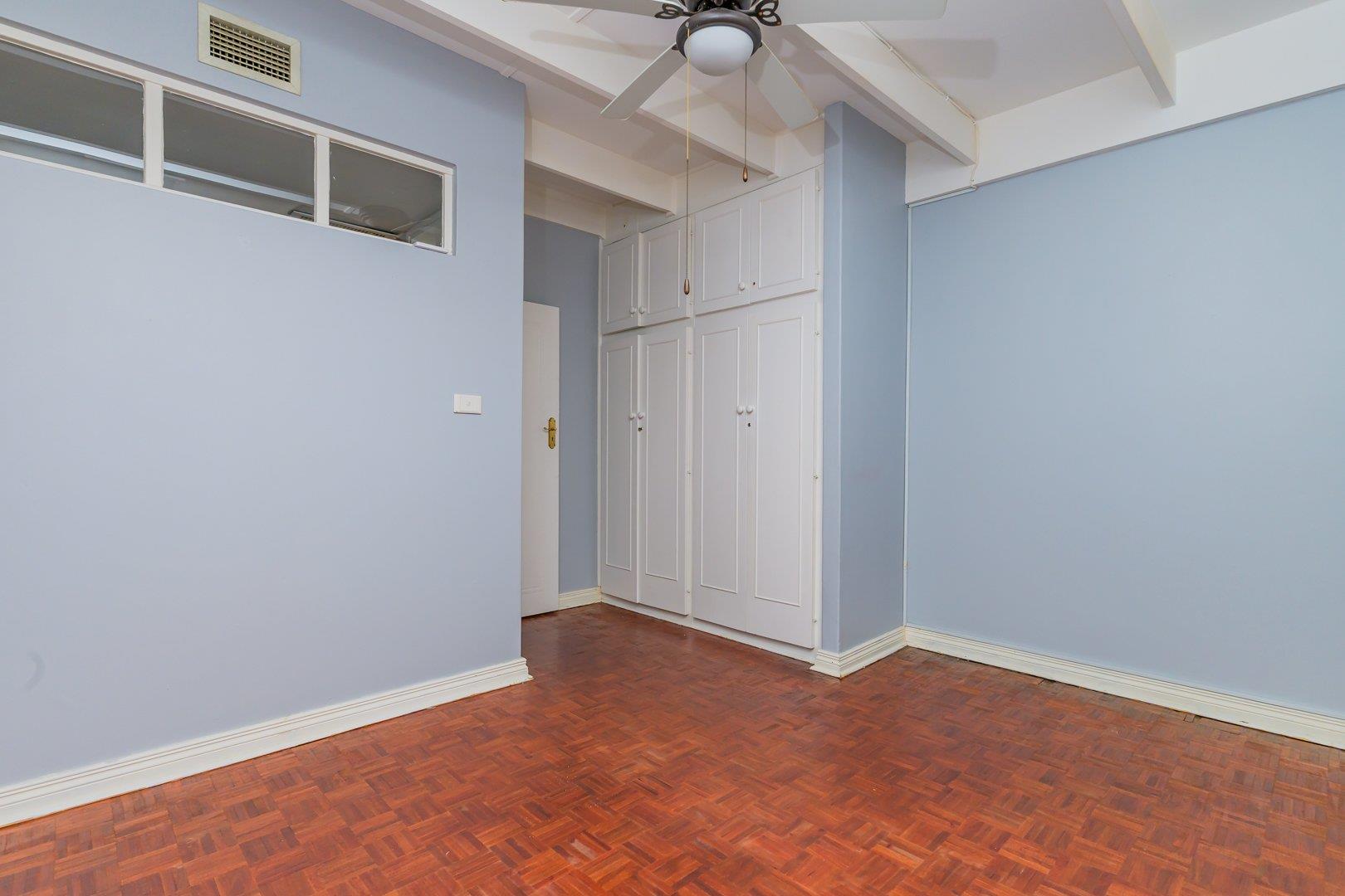 Upstairs: Two air-conditioned bedrooms with built-in cupboards, including a main en-suite (bath with overhead shower), plus a family bathroom with shower.