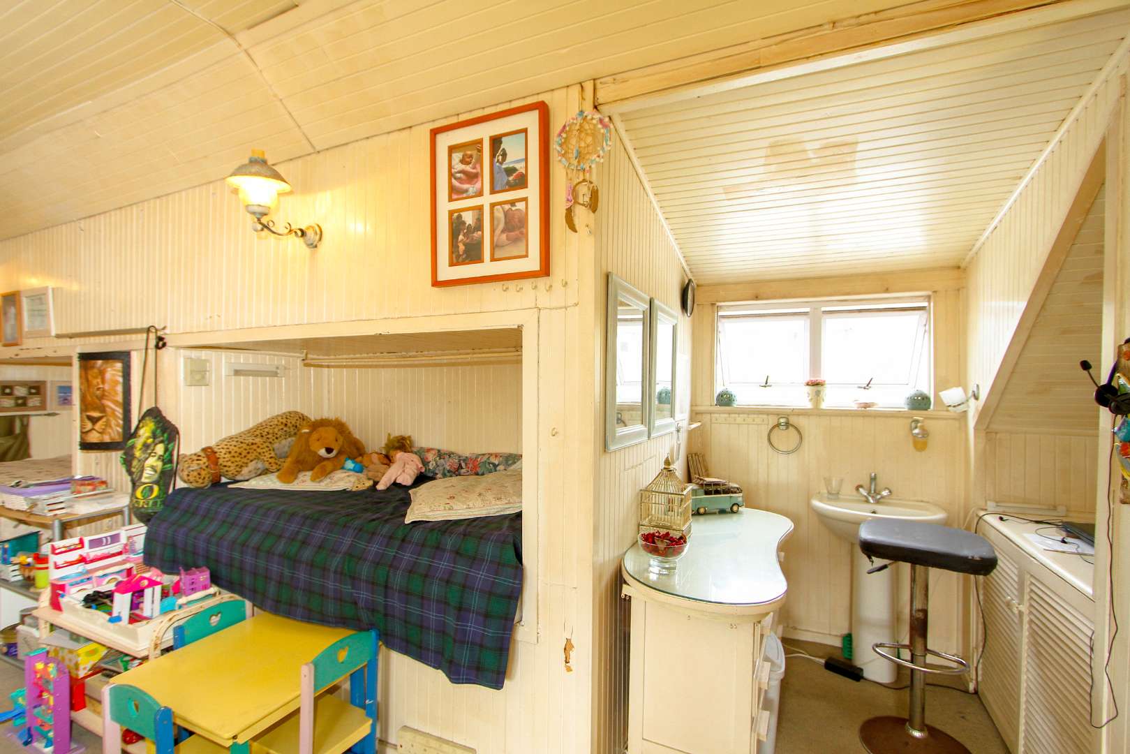 The third upstairs large loft style bedroom has a basin, so already has water to set up a second bathroom en-suite.