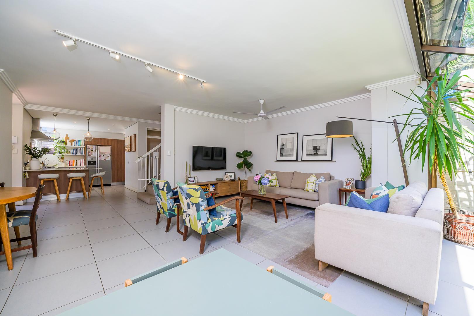 The light-filled open-plan living area flows seamlessly out to a beautifully landscaped private garden and pool area, creating the perfect indoor-outdoor lifestyle Umhlanga is known for.