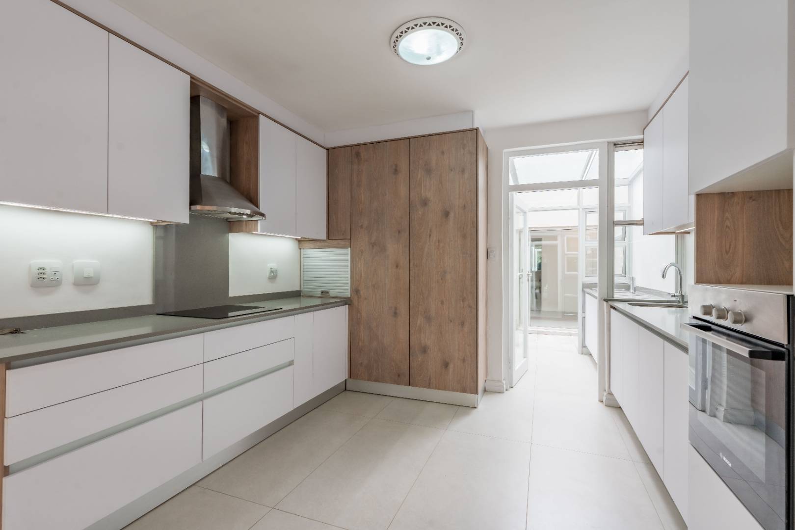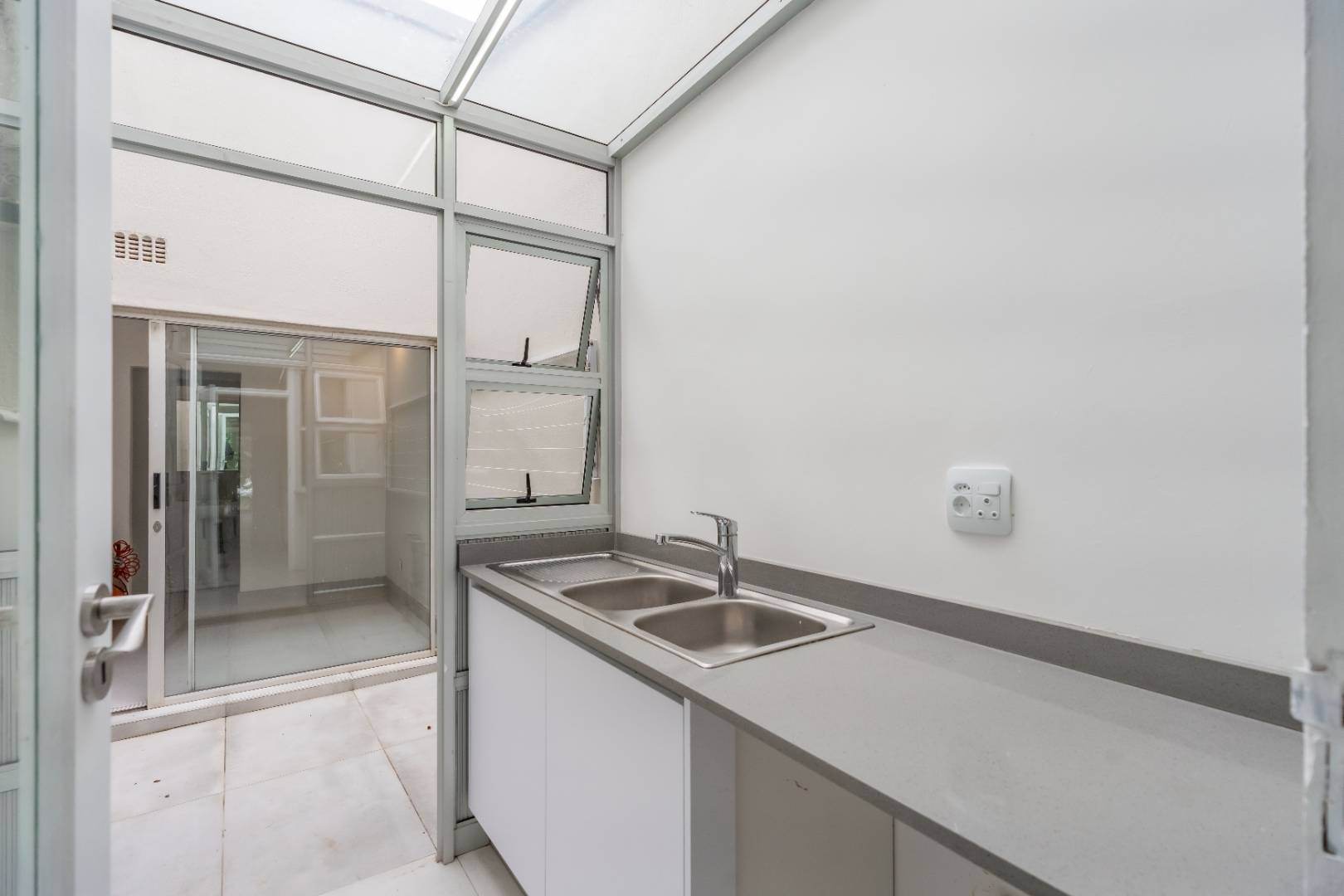 Open Plan Newly fitted kitchen with scullery leading out to drying area